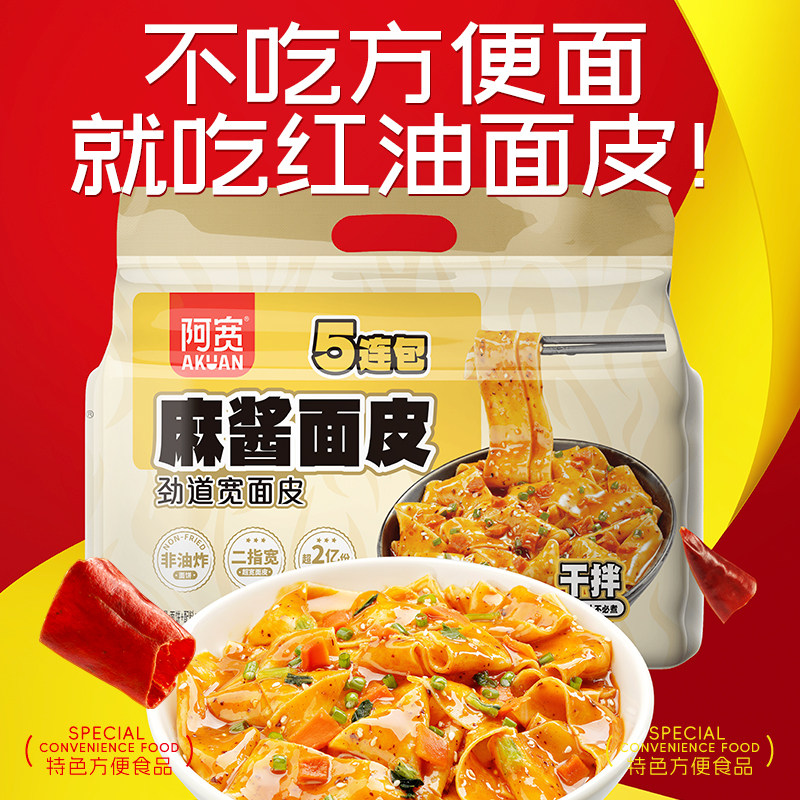 阿宽红油面皮麻酱面皮五连包460g 1速食宽面皮干拌面免煮