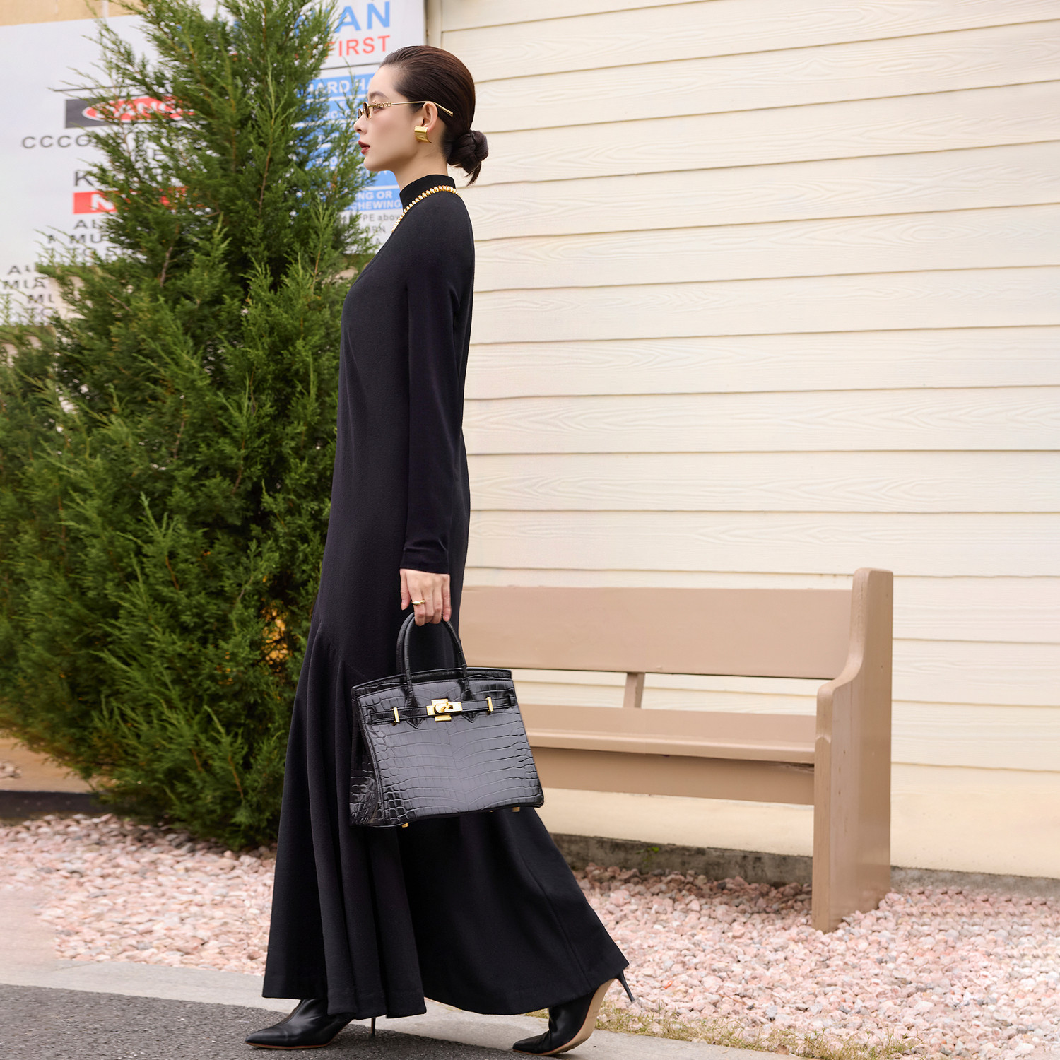 酒立领收腰连衣裙女 中长裙2025秋冬新款 兰卡时尚 通勤气质职场长袖