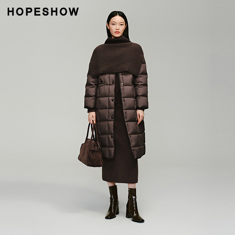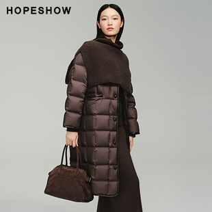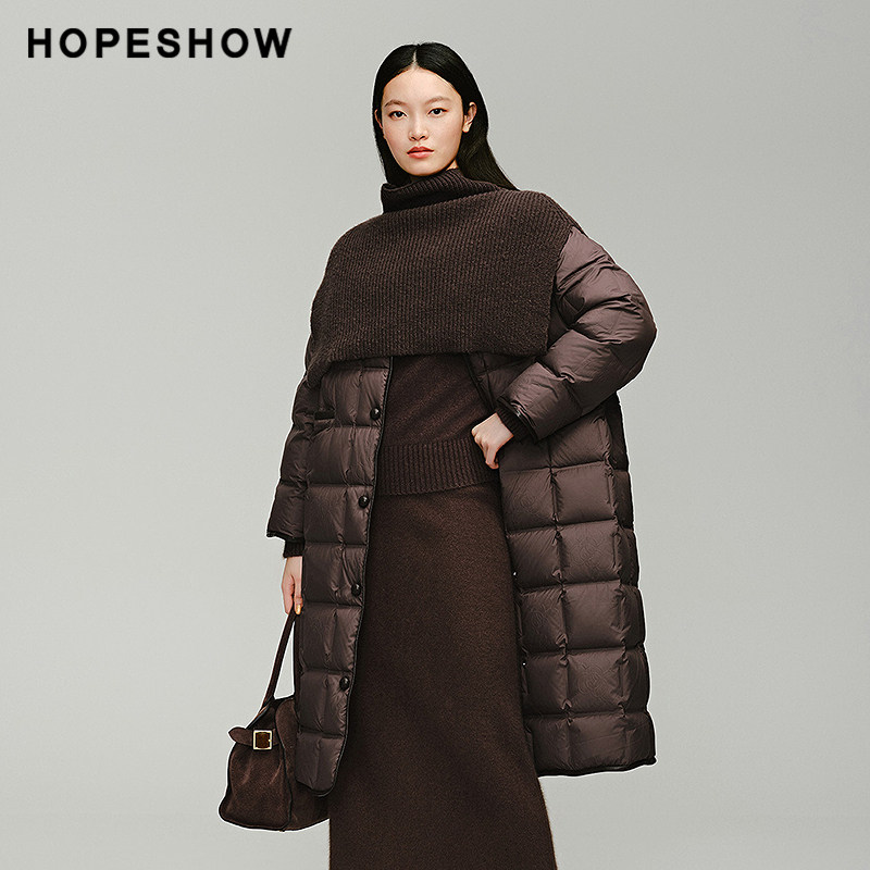 女装 2024新款 立体浮雕山茶花披肩圆领直充中长羽绒服 冬季 红袖