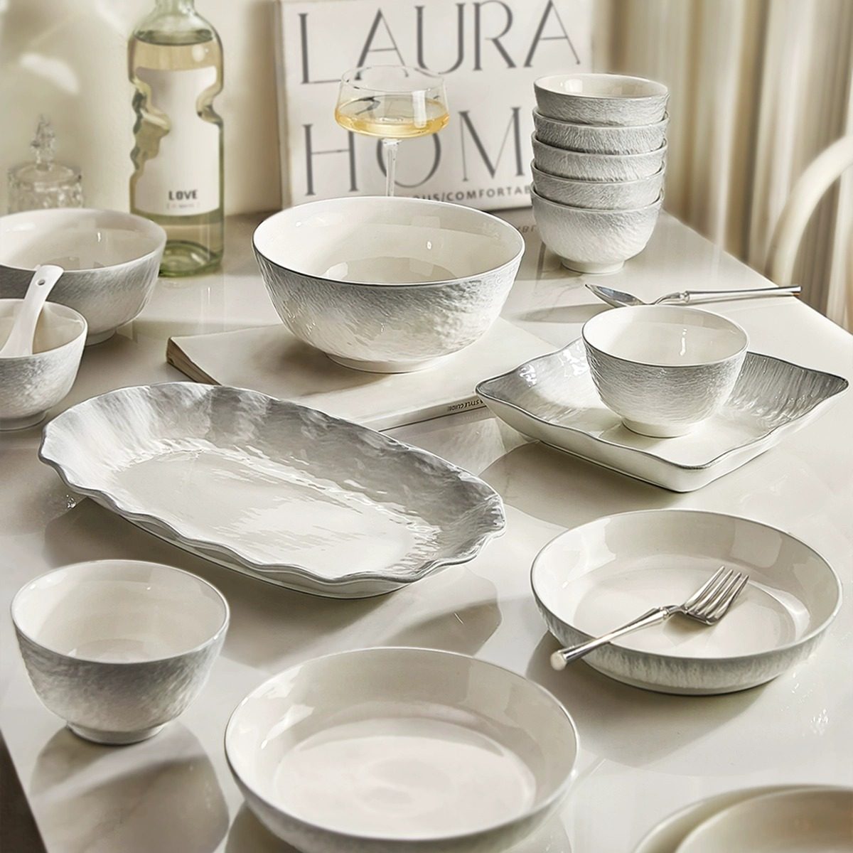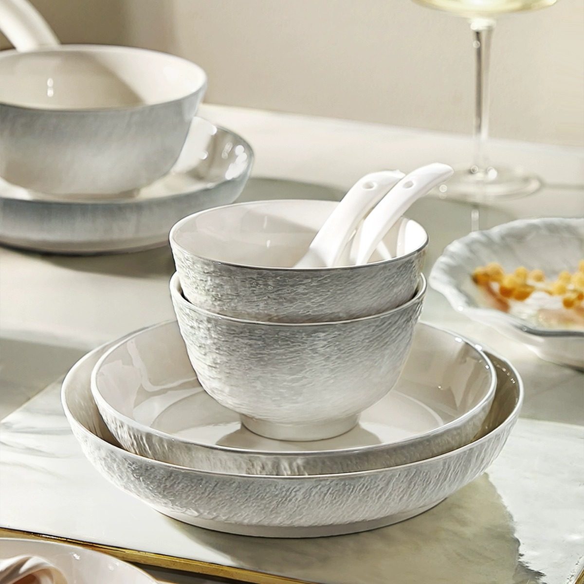 家用 结婚乔迁礼物陶瓷碗盘碟套装 alaniz隐釉下彩餐具套装 2025新款