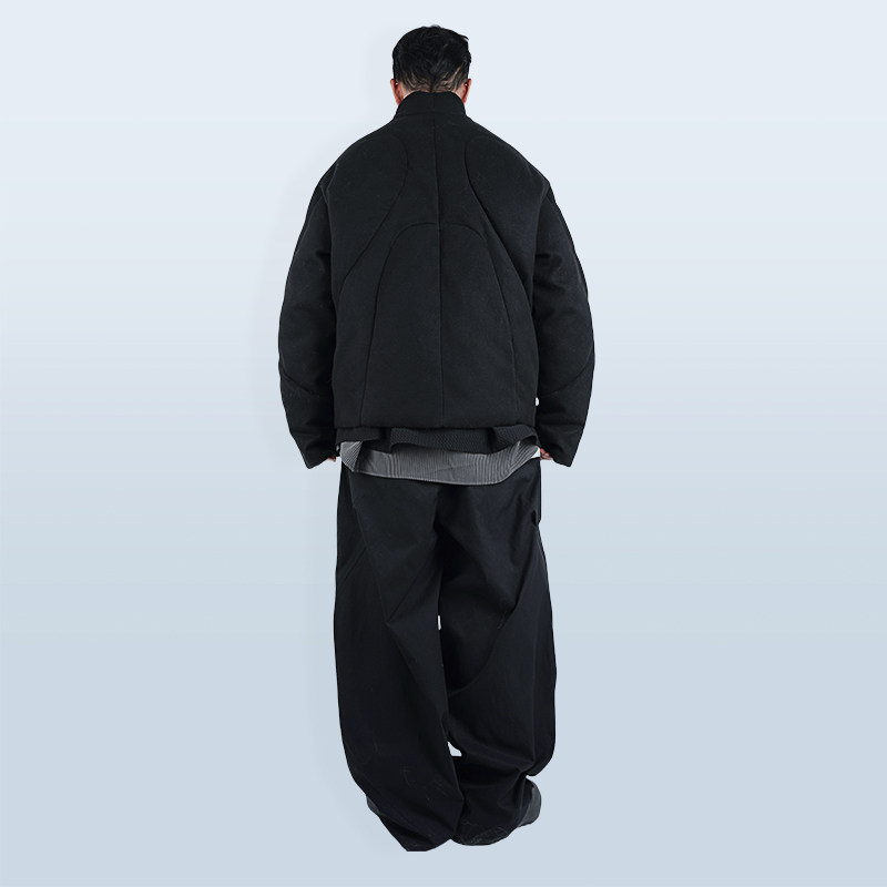 森马羽绒服女冬肌理拼接条纹学院风2025新款 面包服 立领宽松插肩袖