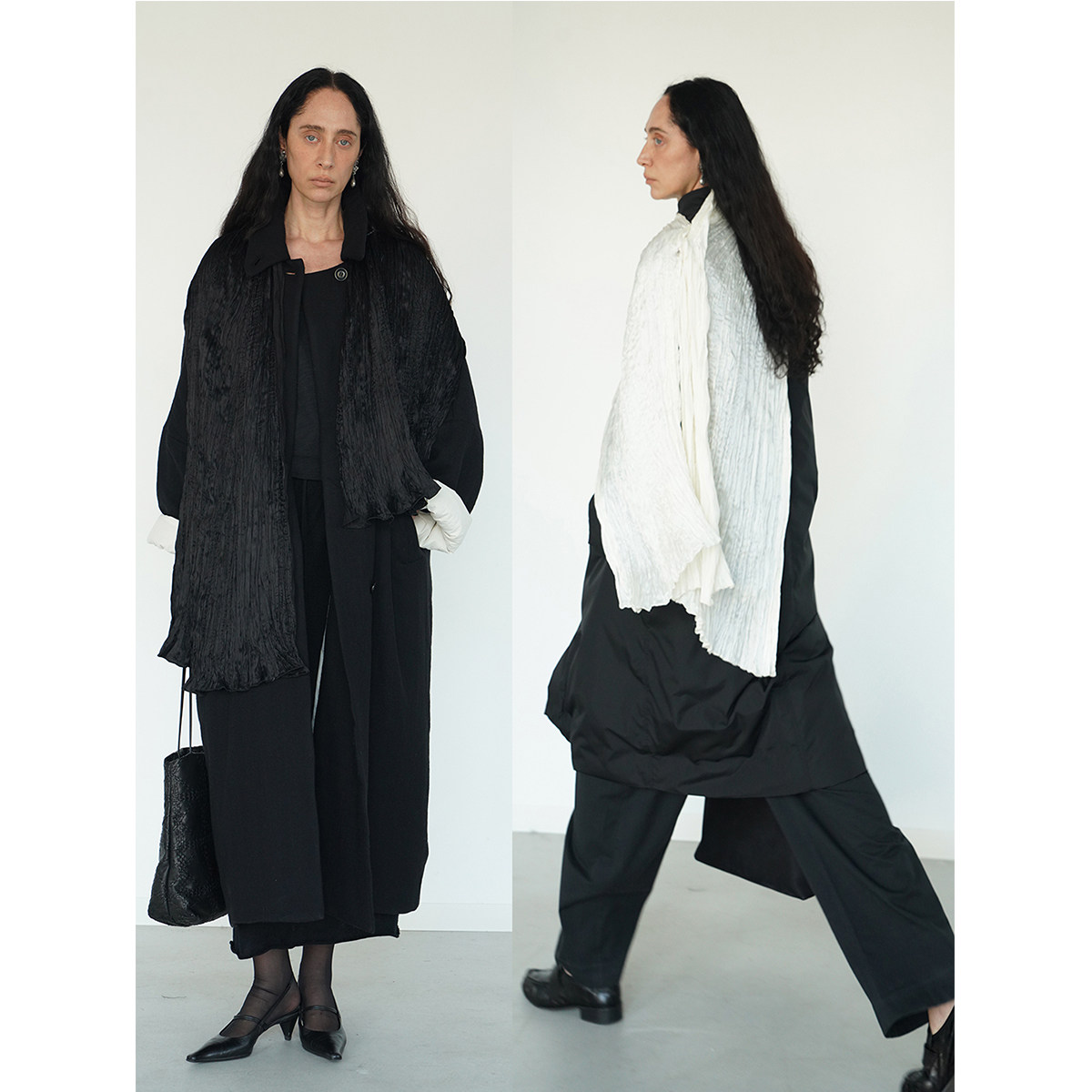 Bow 回响 2025 洛可可 真丝重工手皱宽围巾 「深冬」