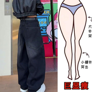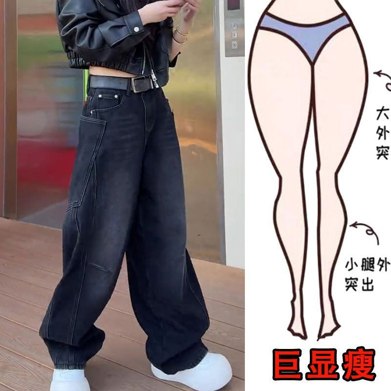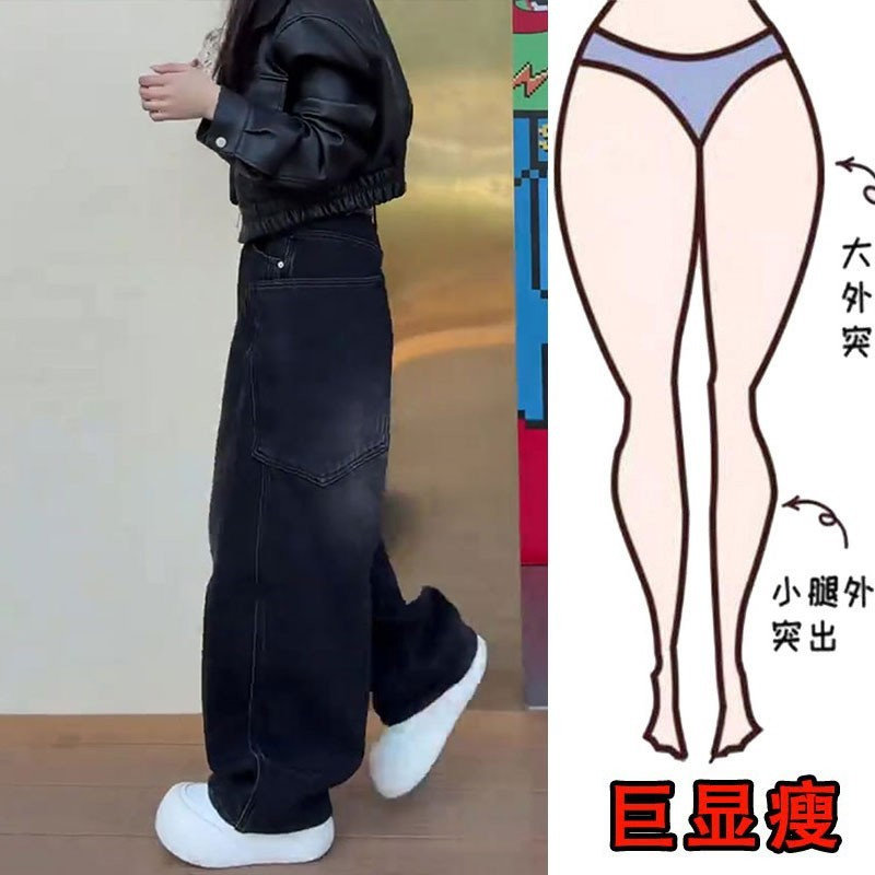 阔腿裤 蓝灰色直筒牛仔裤 梨形身材胖mm宽松显瘦窄版 加绒大码 女冬季