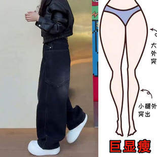 显瘦垂感直筒裤 加绒梨形身材胖mm宽松大码 女冬季 水泥灰阔腿牛仔裤