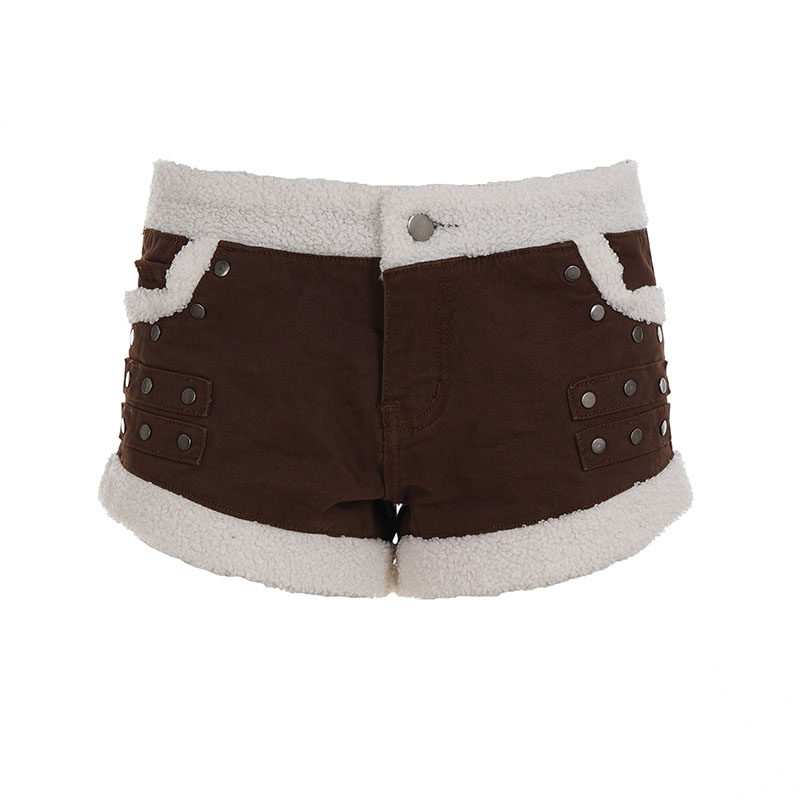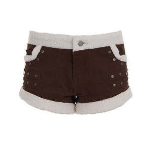 女辣妹风高街热裤 ROCKMORE 低腰毛毛拼接撞色休闲短裤 复古 美式