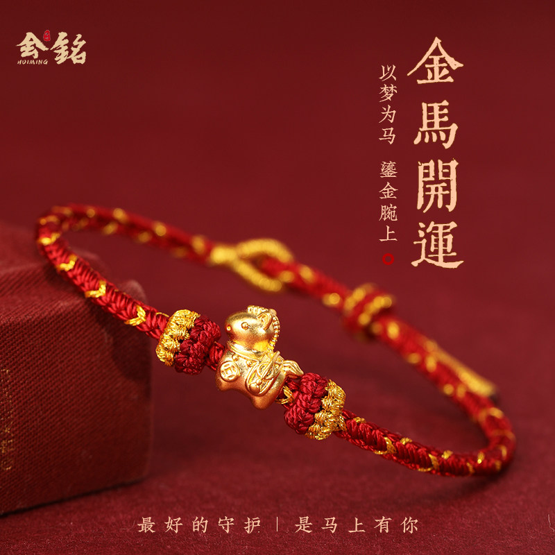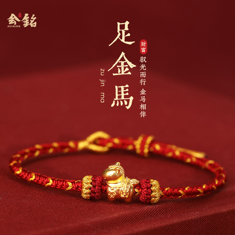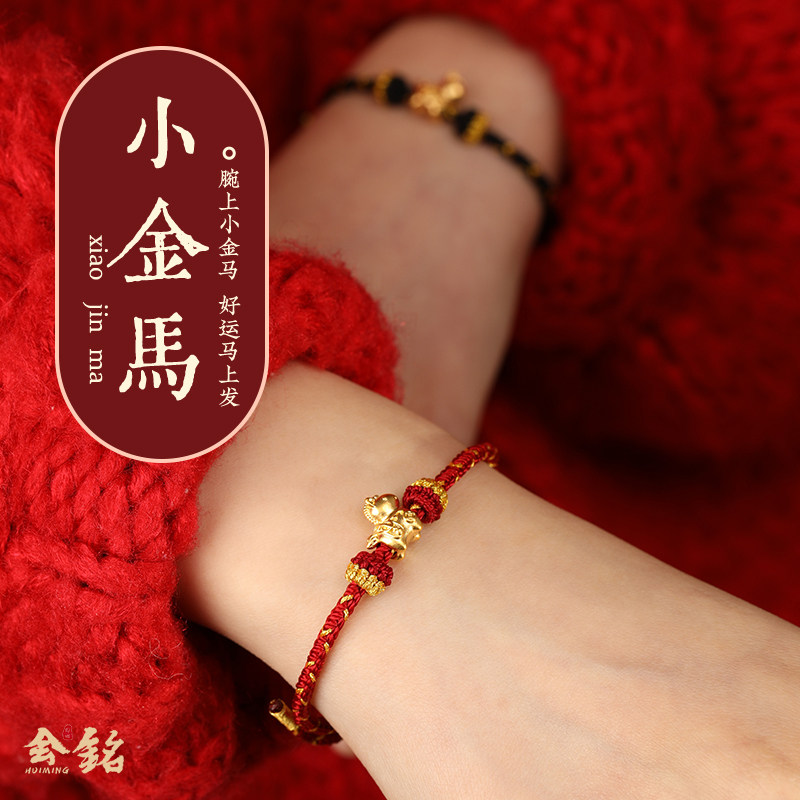 周六福黄金手串女本命年手链定价十二生肖蛇年5d硬金串珠马年礼物