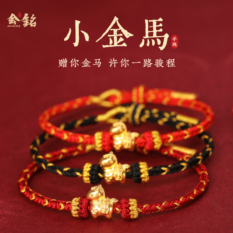 周六福黄金手绳女足金定价5d硬金礼物手链十二生肖本命年生肖蛇马