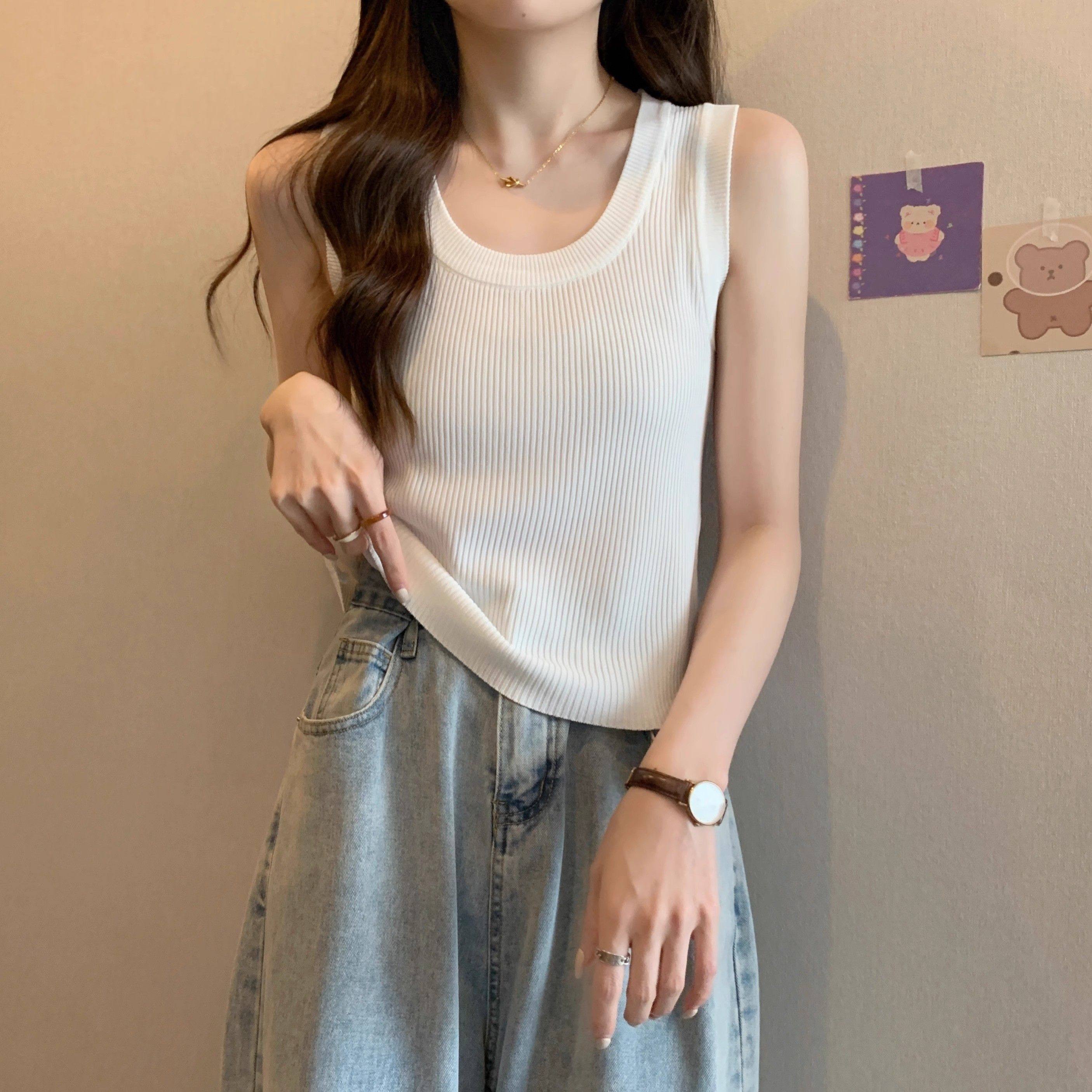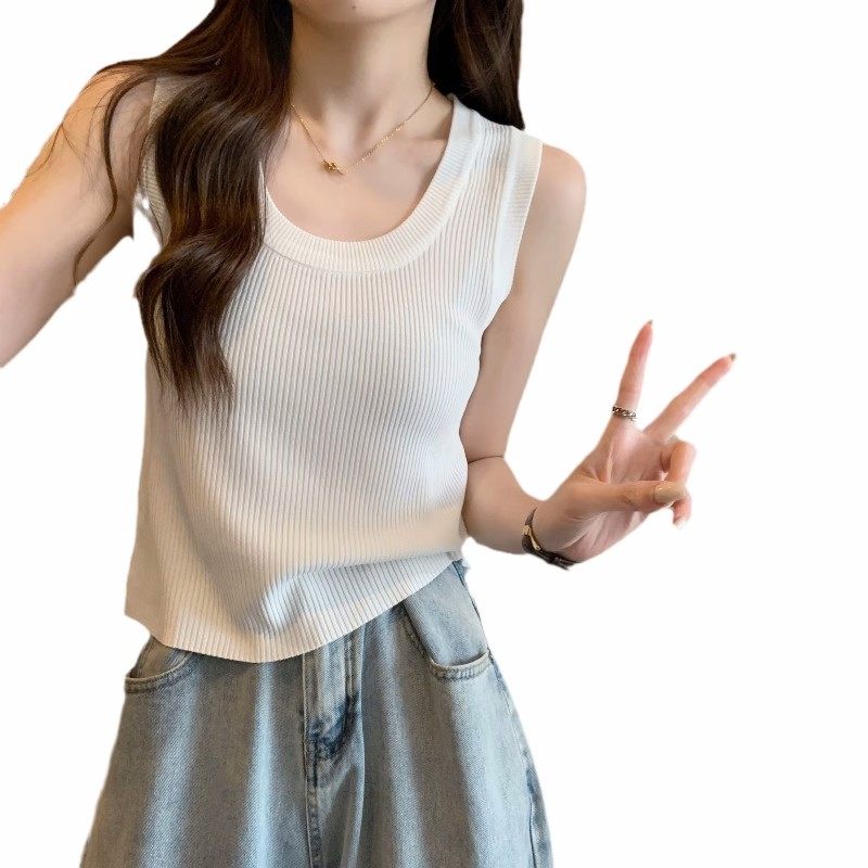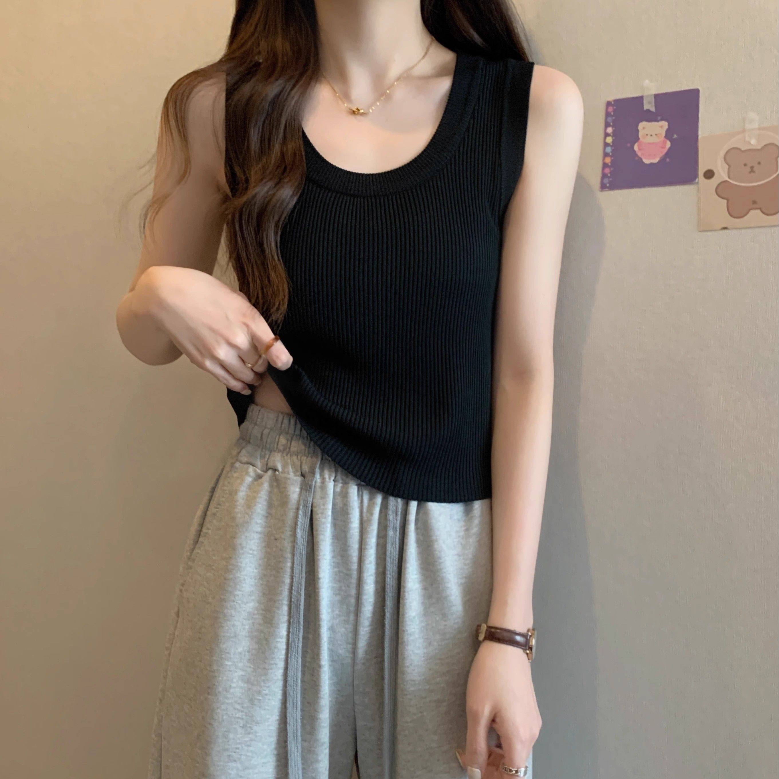 带胸垫2024新款 吊带小背心美式 女生冰丝内搭美背上衣 辣妹短款 法式