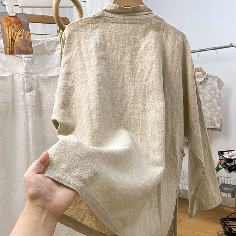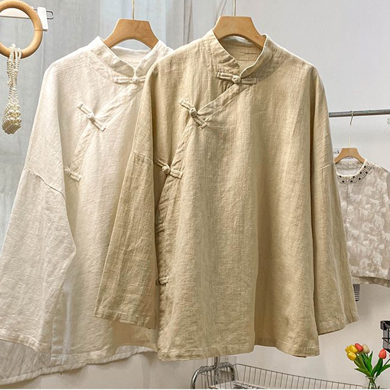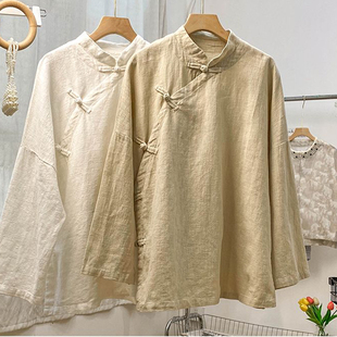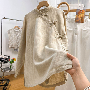禅意立领盘扣衬衣文艺长袖 复古上衣春秋新款 茶服 衬衫 棉麻休闲长袖