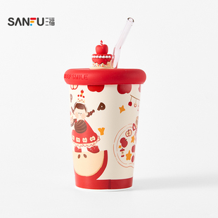 富光玻璃杯水杯女生高颜值高硼硅咖啡杯早餐杯刻度暖手杯随手杯子