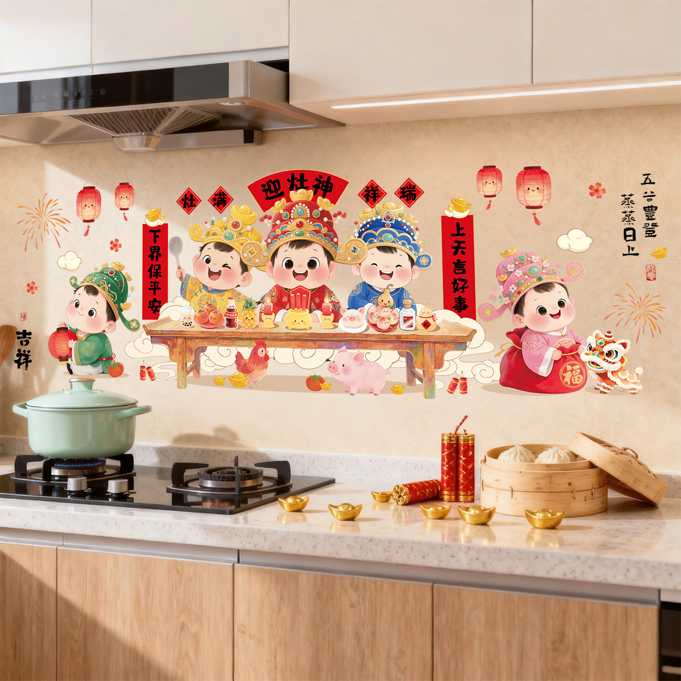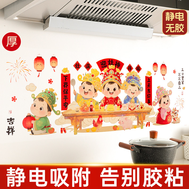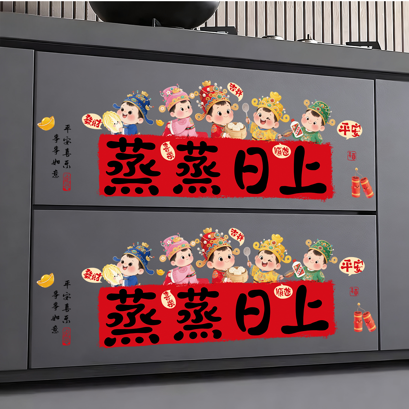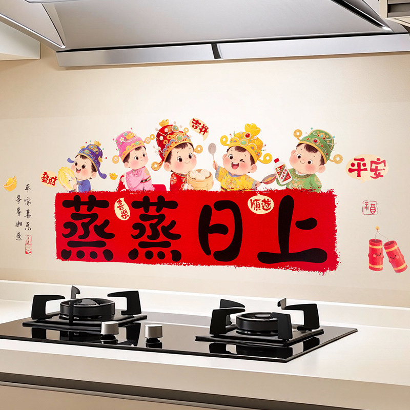 新年厨房防油贴纸蒸蒸日上灶台马年防水静电墙贴防火耐高温灶台贴