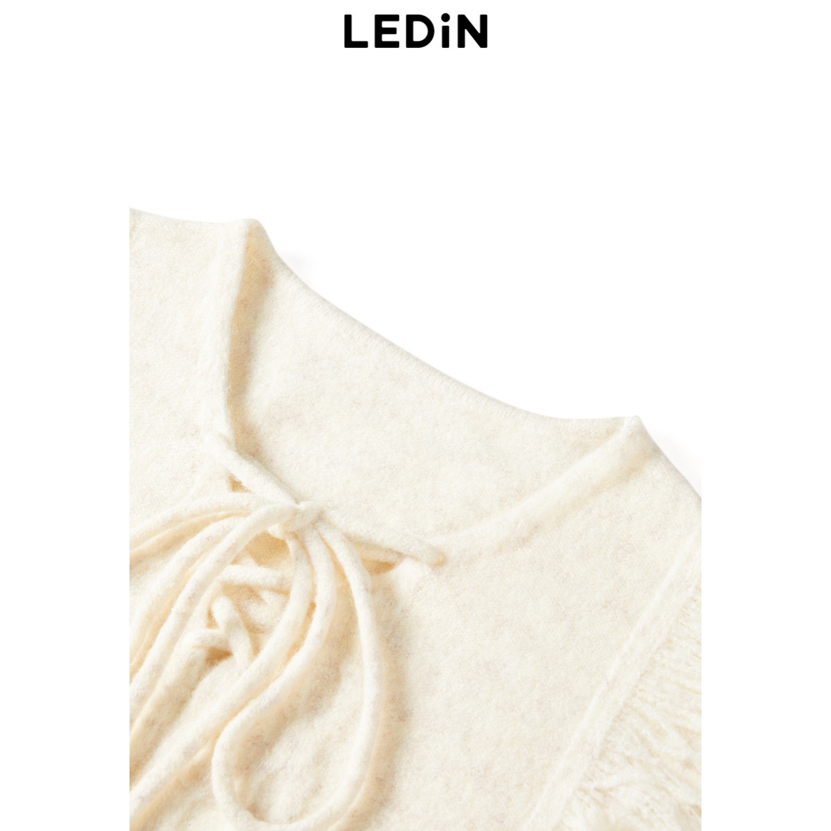 新款 乐町宽松V领系带连衣裙冬季 内搭毛衣裙C1FAE4416 商场同款