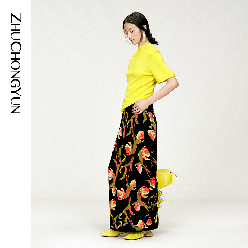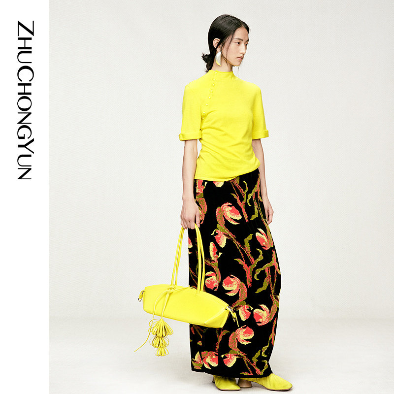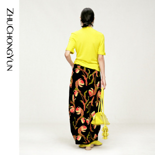 修身 ZHUCHONGYUN2026春新款 小立领斜门襟短袖 山羊绒混纺