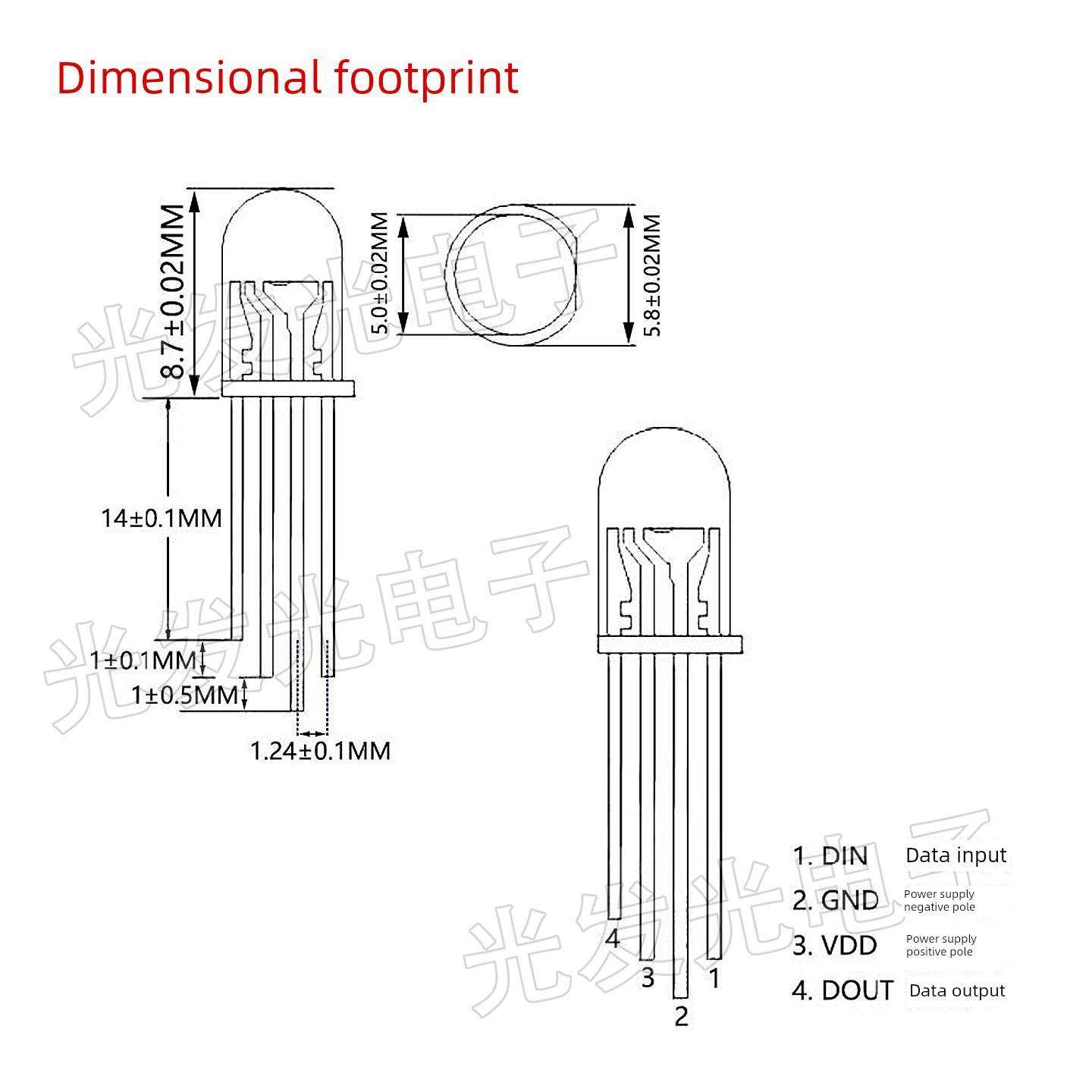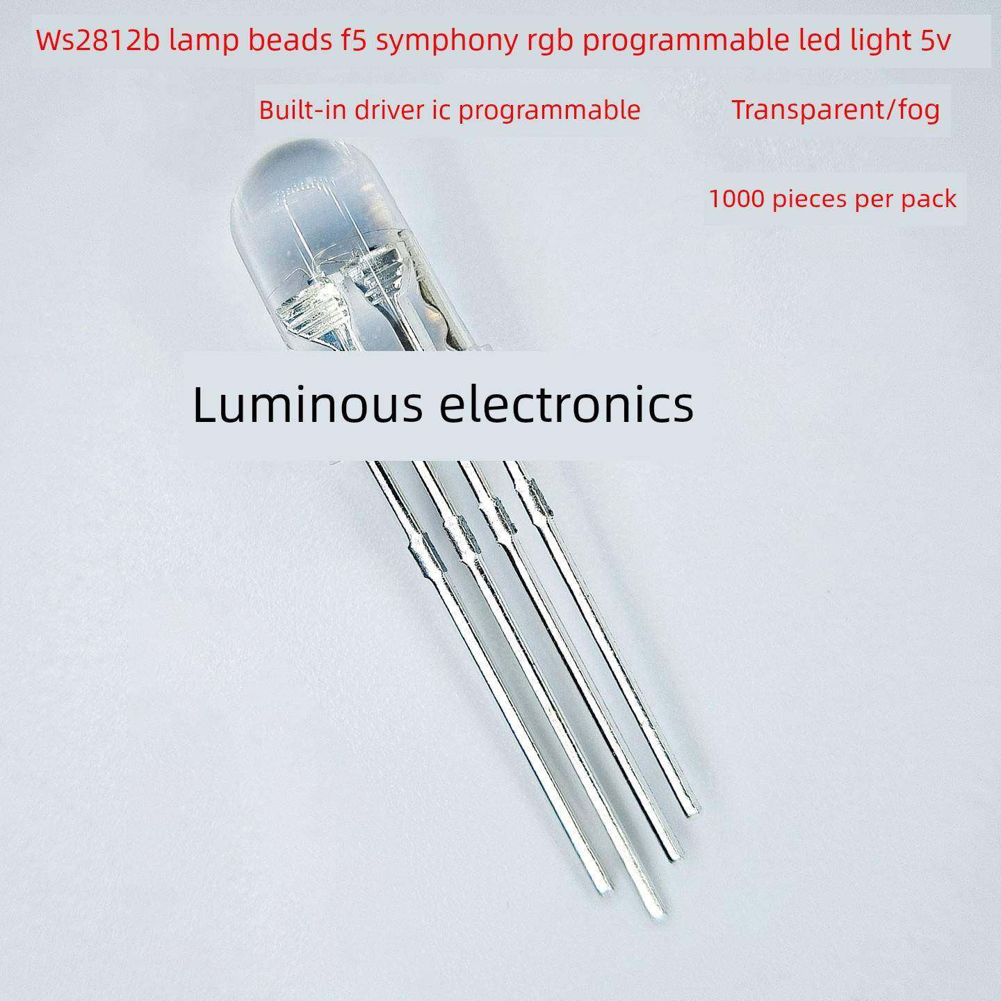 WS2812B灯珠 RGB可编程幻彩LED发光二极管圆头透明雾状直插F5MM