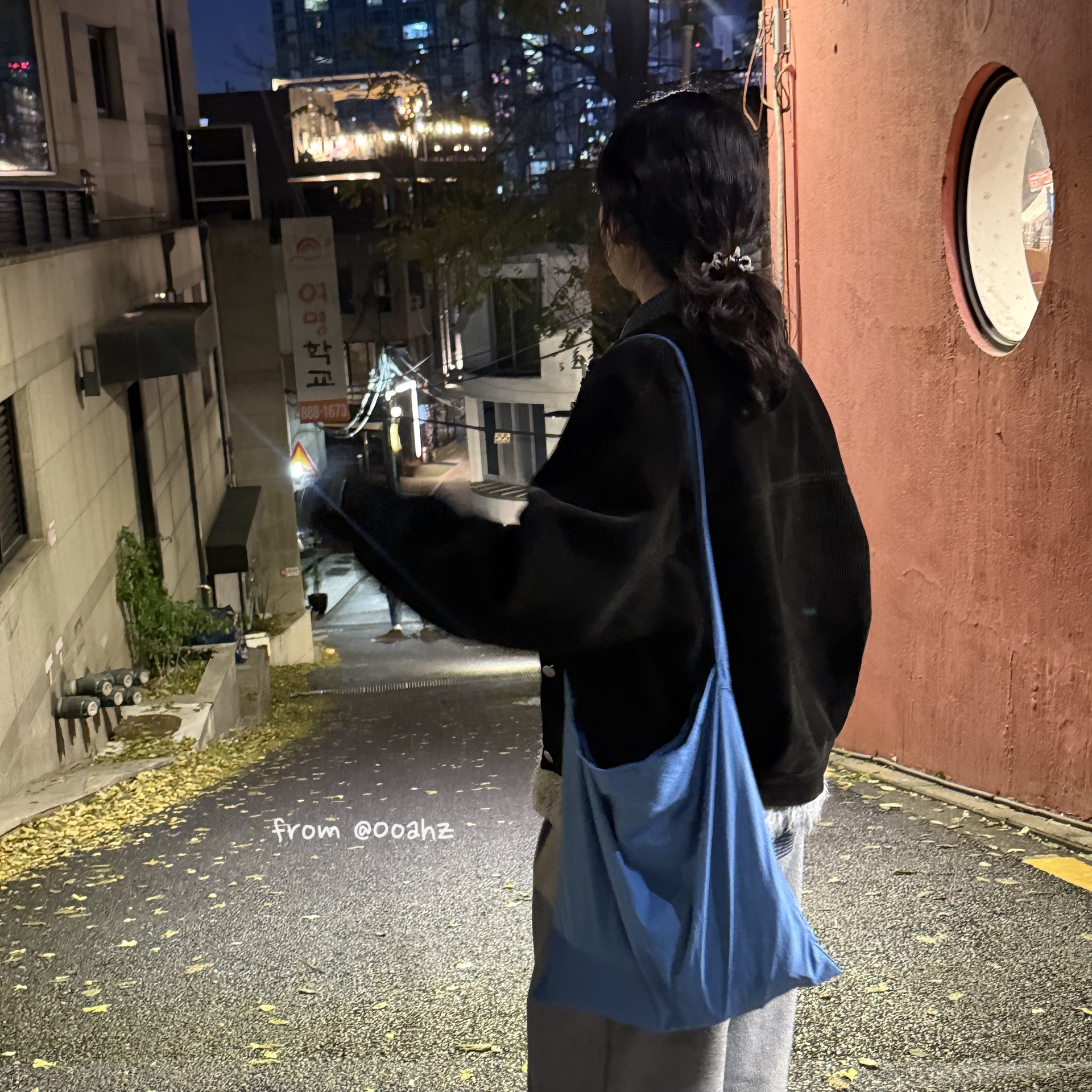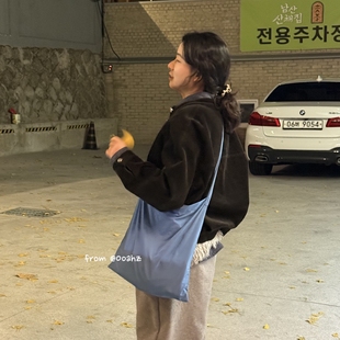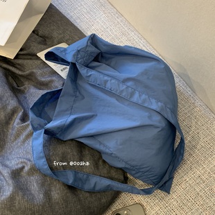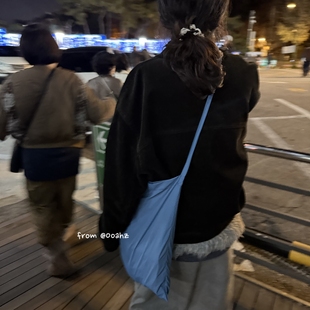 简约尼龙斜跨包单肩水桶购物袋 亮色布袋子 冬日雾蓝 韩国ins薄款