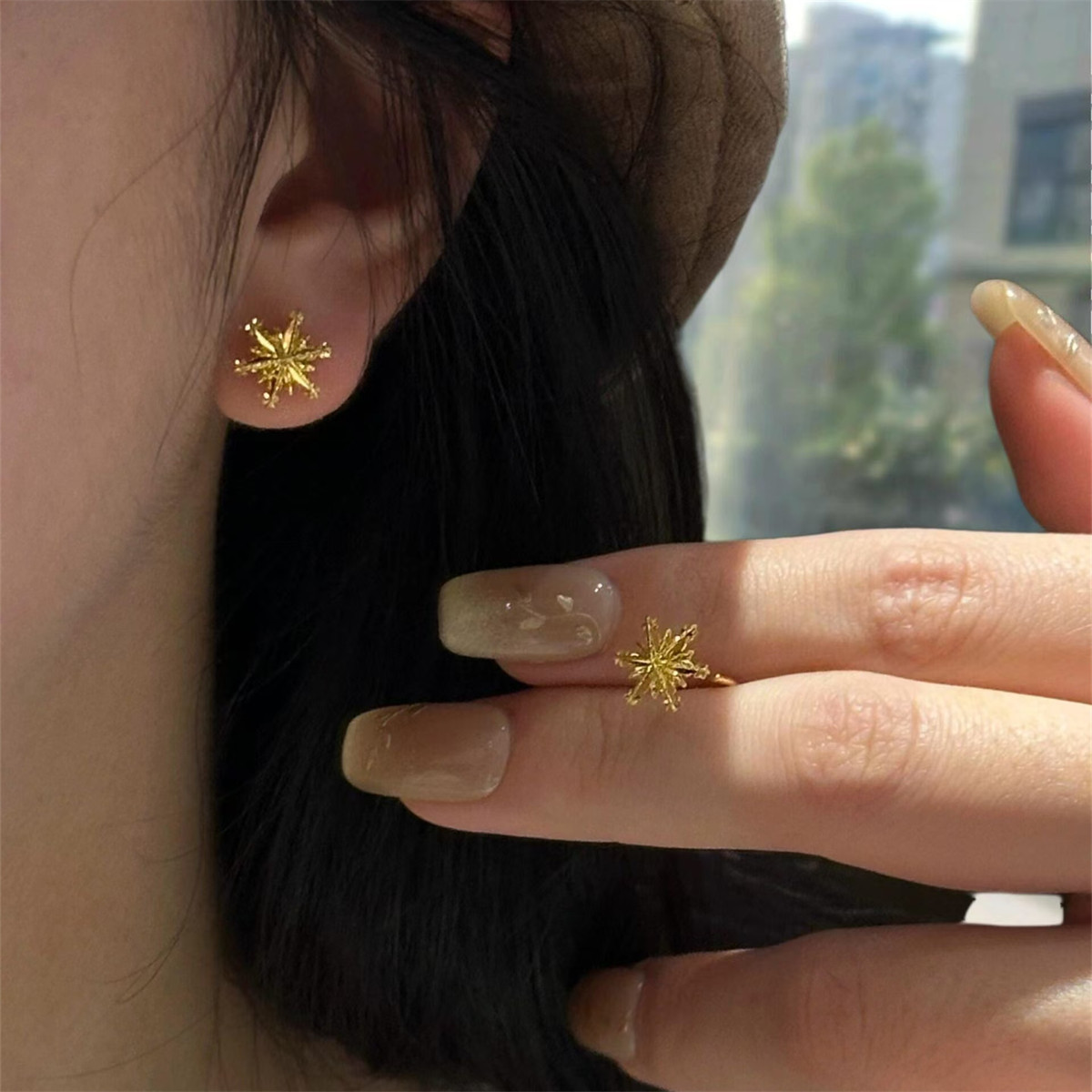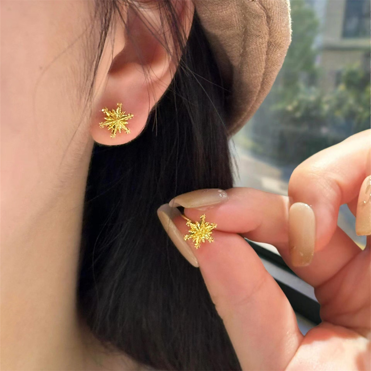 金色爆闪雪花耳钉2025新款 高级感轻奢小众精致百搭秋冬耳环女 爆款