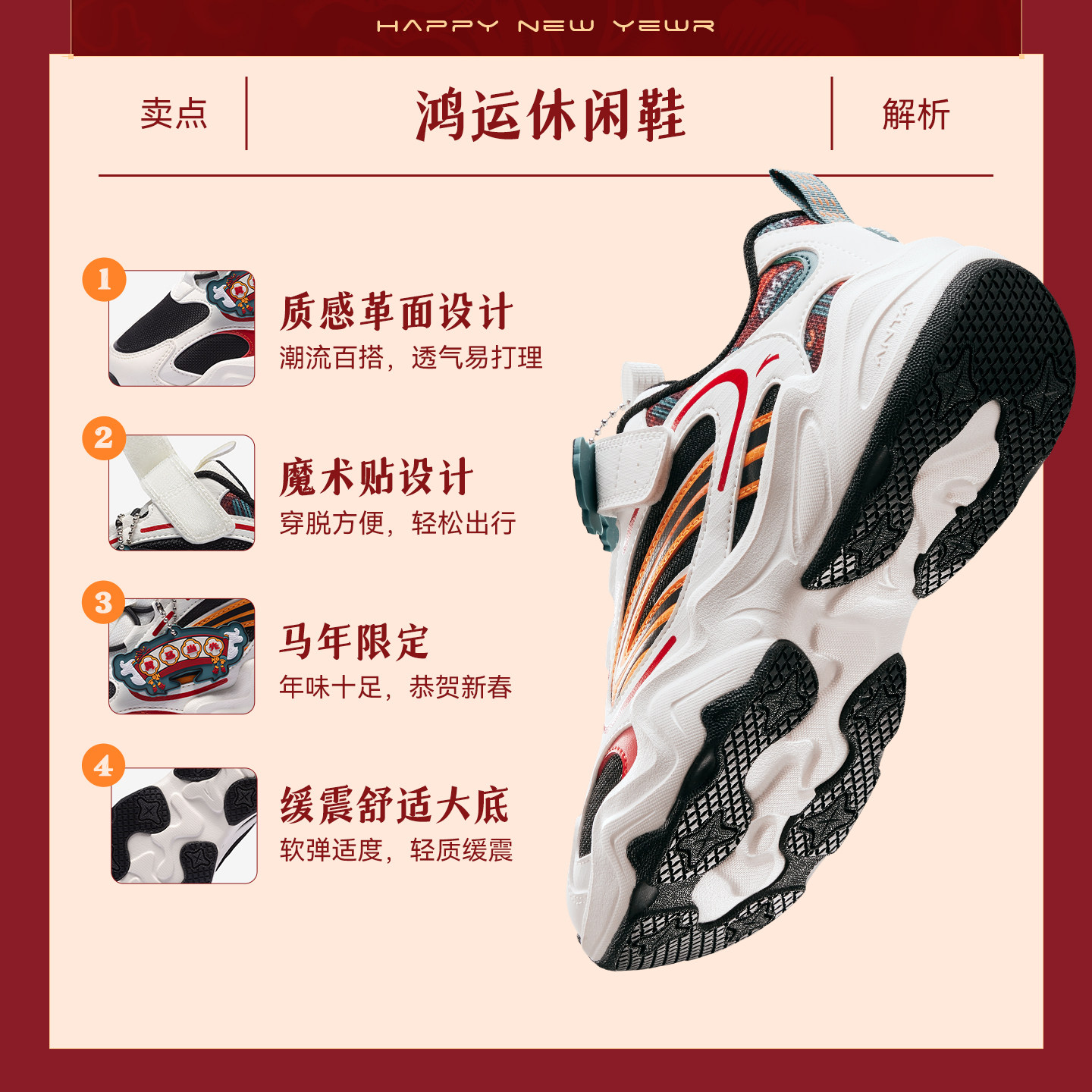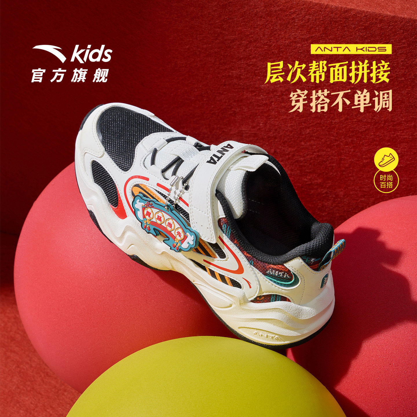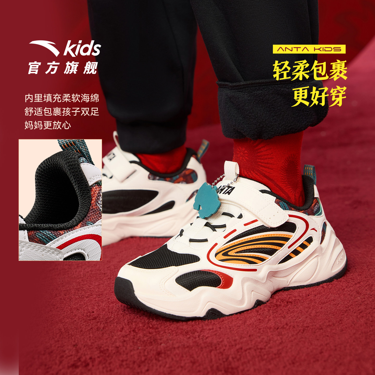 男女童鞋 马年红色鸿运犟弹复古老爹鞋 安踏儿童运动鞋 熔岩新年款