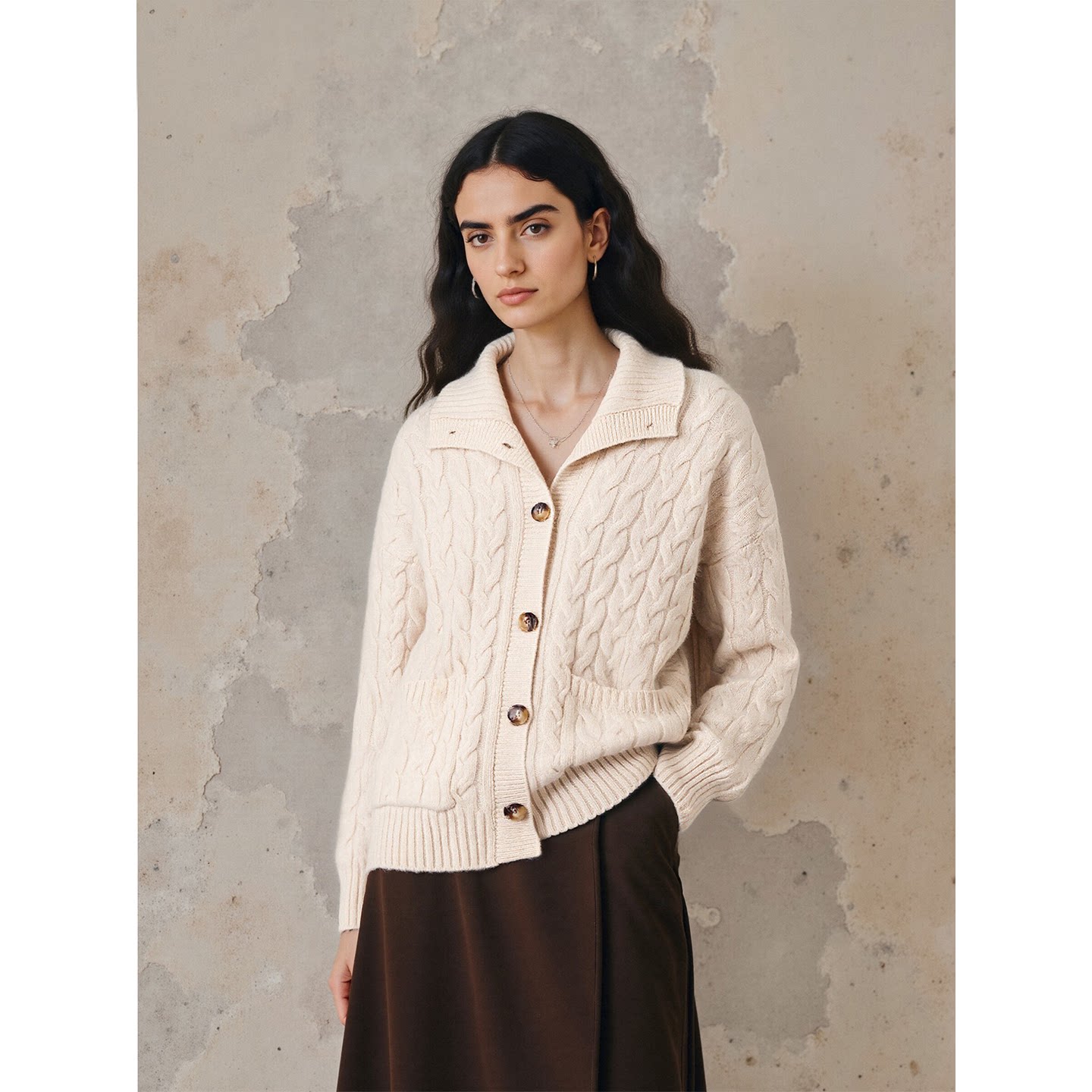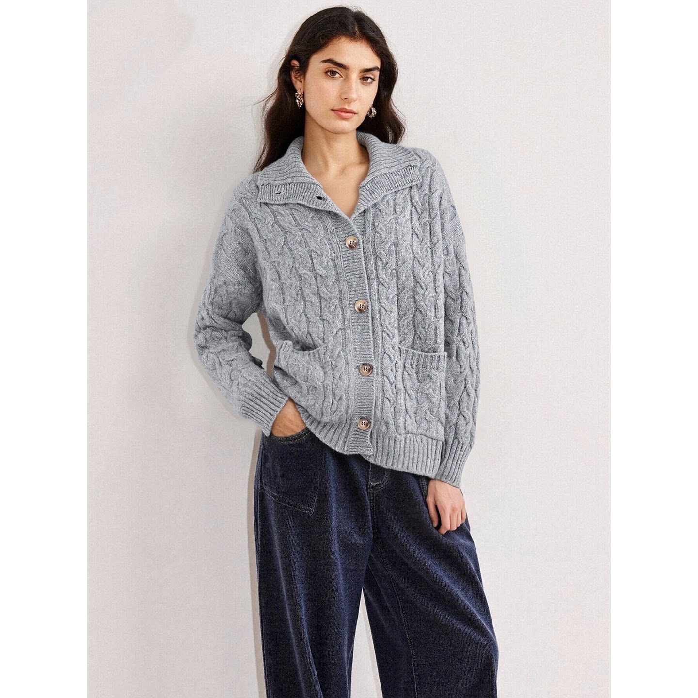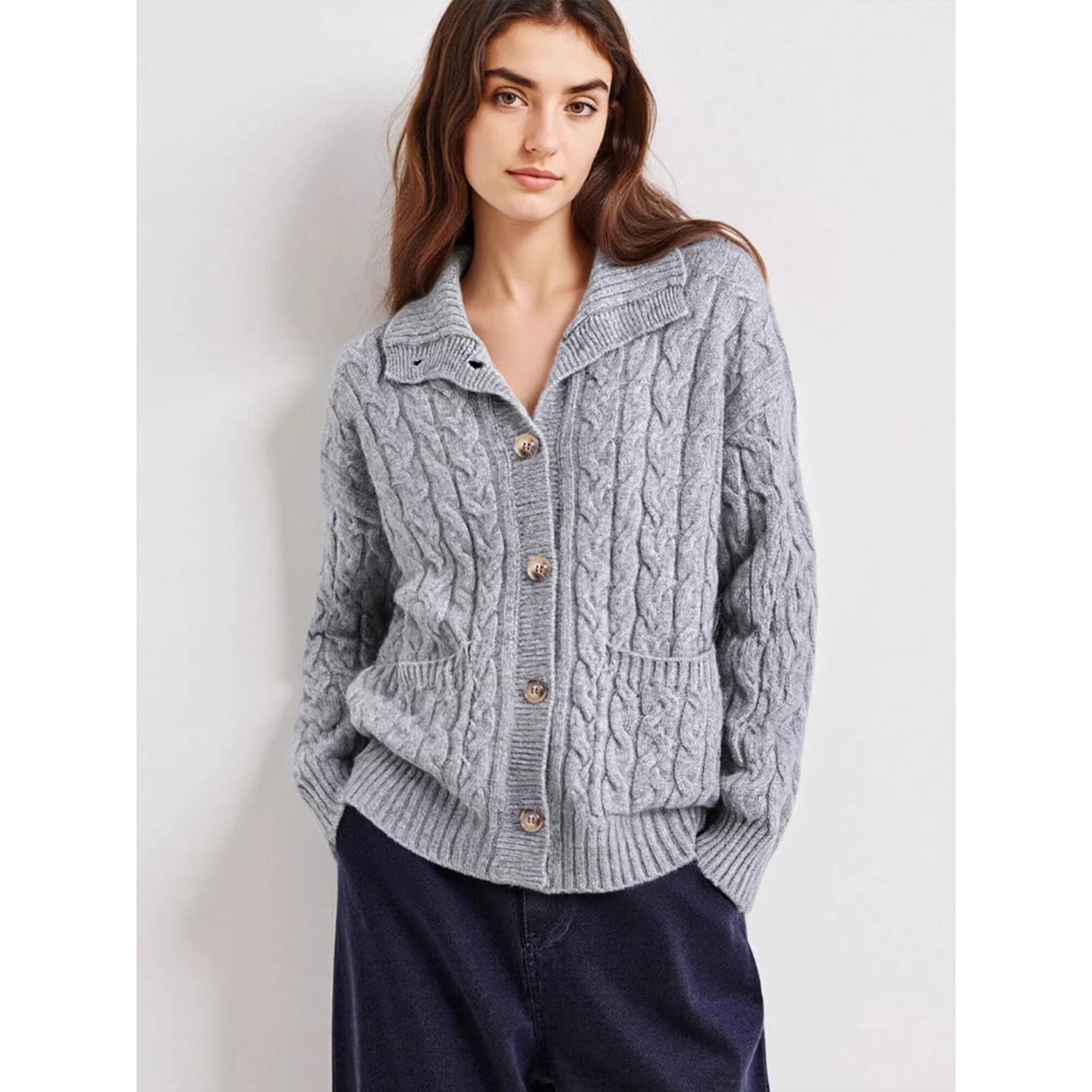 百家好100%羊毛本命年红色高领毛衣女春加厚针织开衫 Basic House