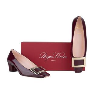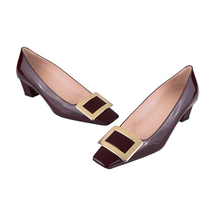 秋冬方头方扣显瘦舒适浅口真皮性感优雅 细高跟鞋 RV单鞋 女2025新款