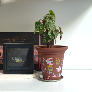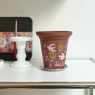 小口径粗陶紫砂花盆办公桌面绿植蝴蝶兰球兰利水透气家用装 饰摆件
