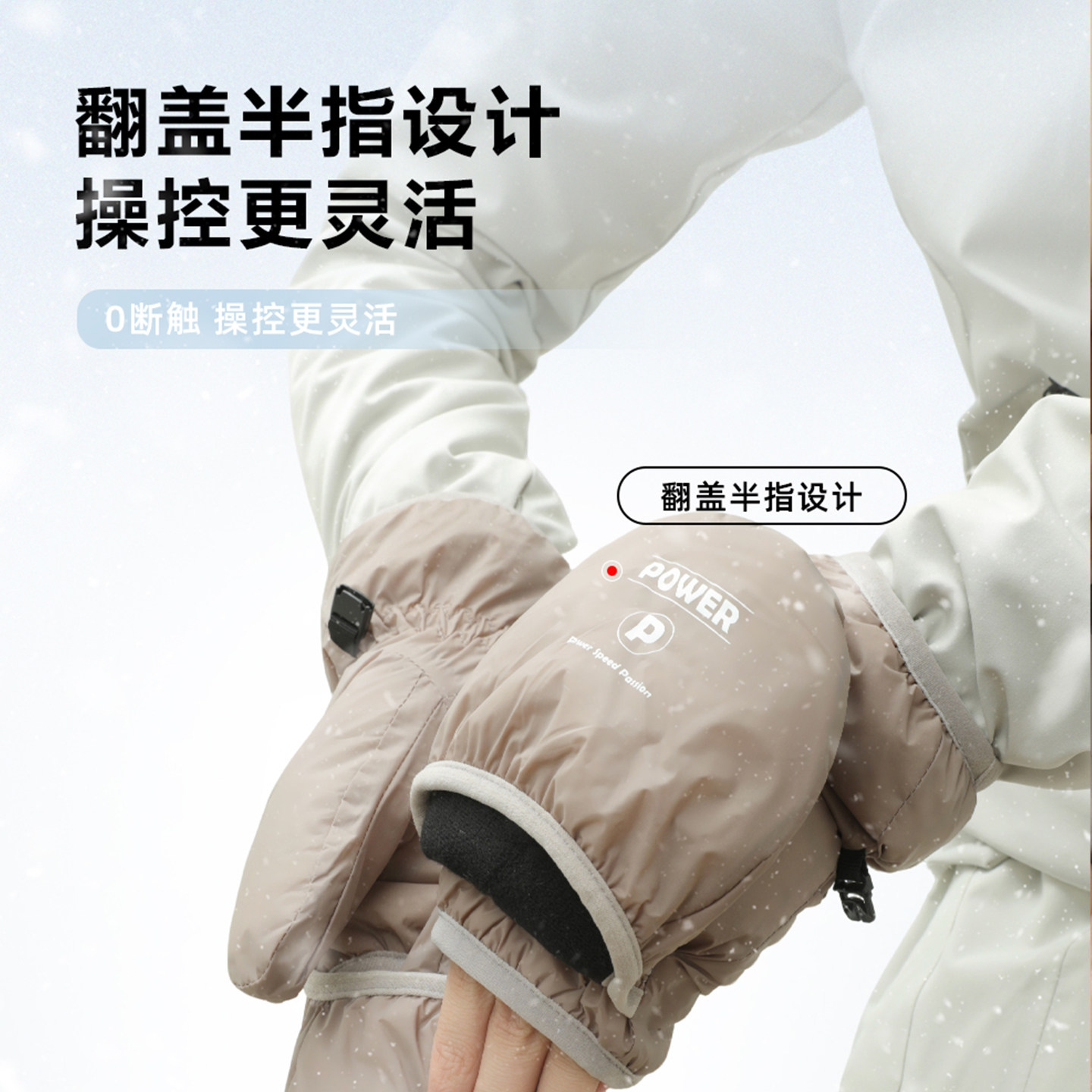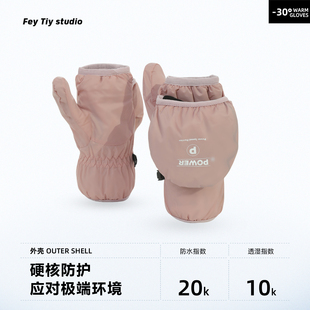 feytiy 加绒户外抗寒保暖露半指 翻盖滑雪手套防水防风可触屏冬季