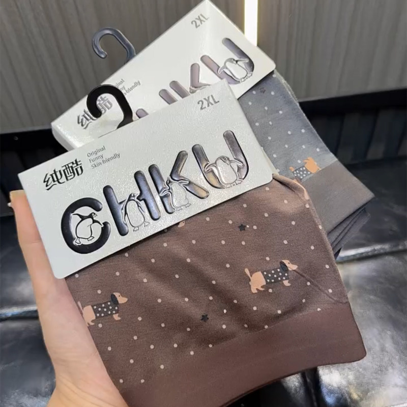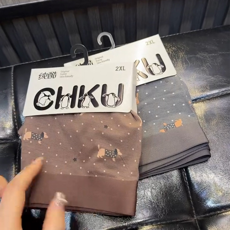 内裤 莫代尔棉质印花中高腰青年四角裤 不卷边 无痕平角内裤 纯酷男士