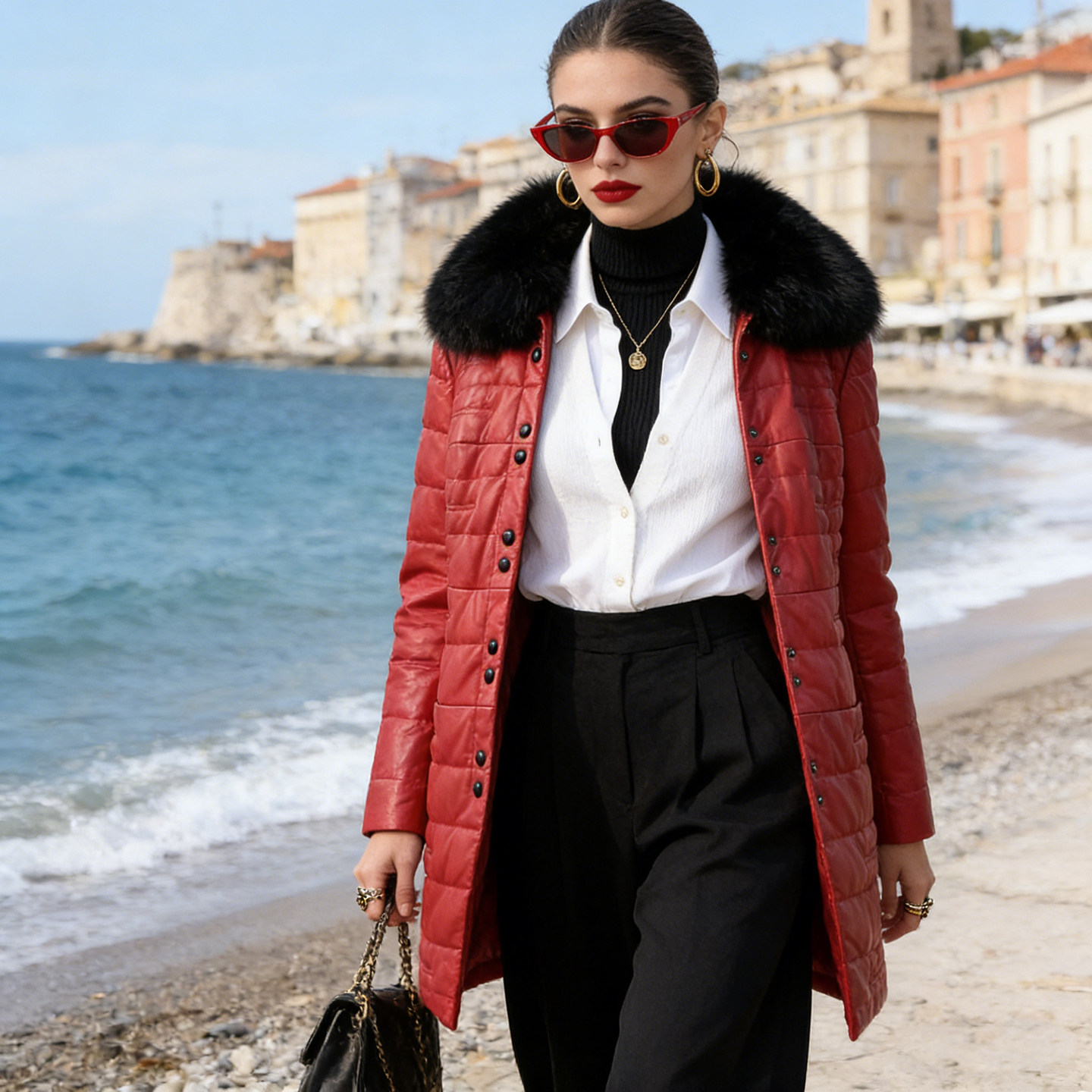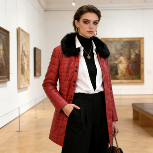 2025新流行绵羊皮羽绒服女短款 水貂领海宁真皮皮衣外套 国风新中式