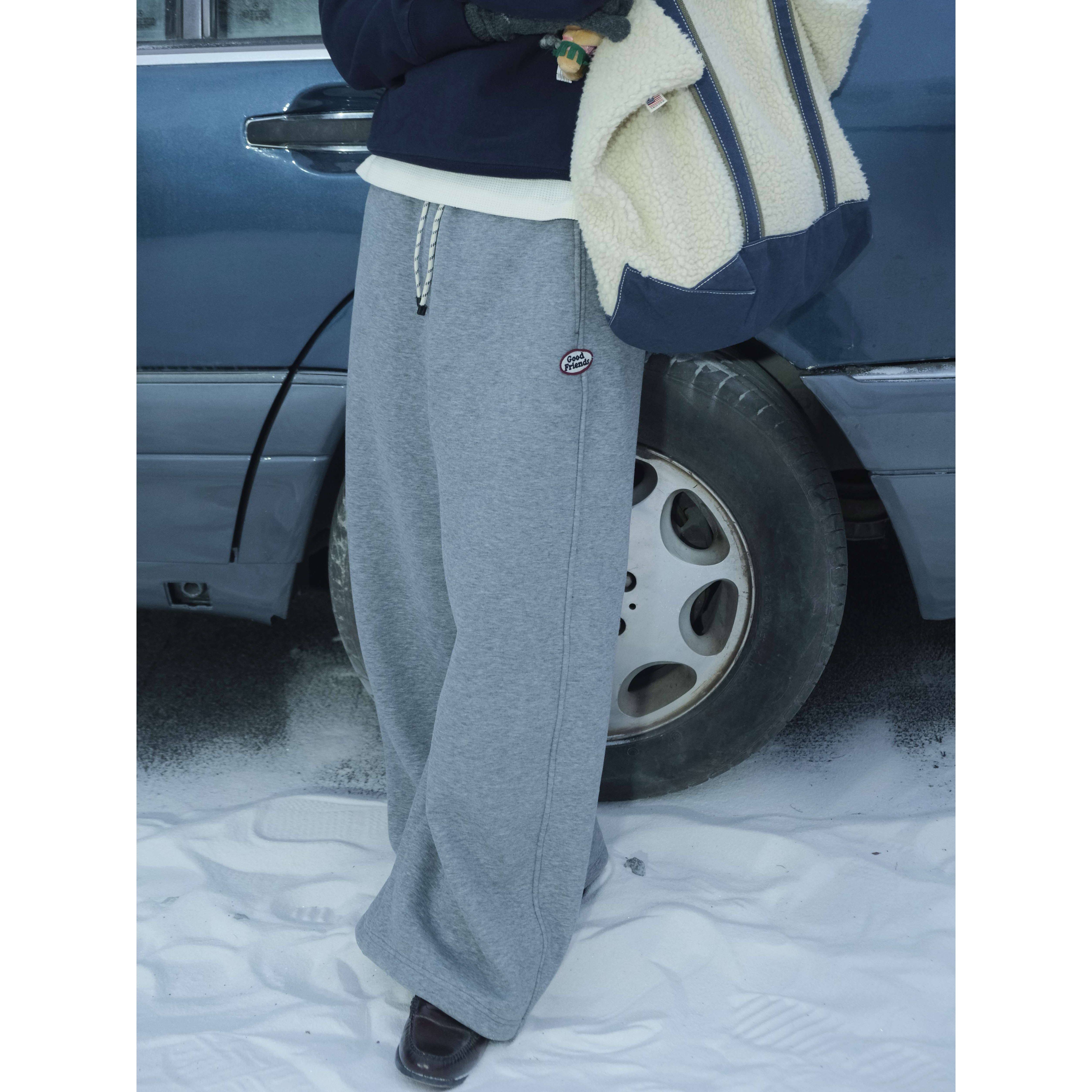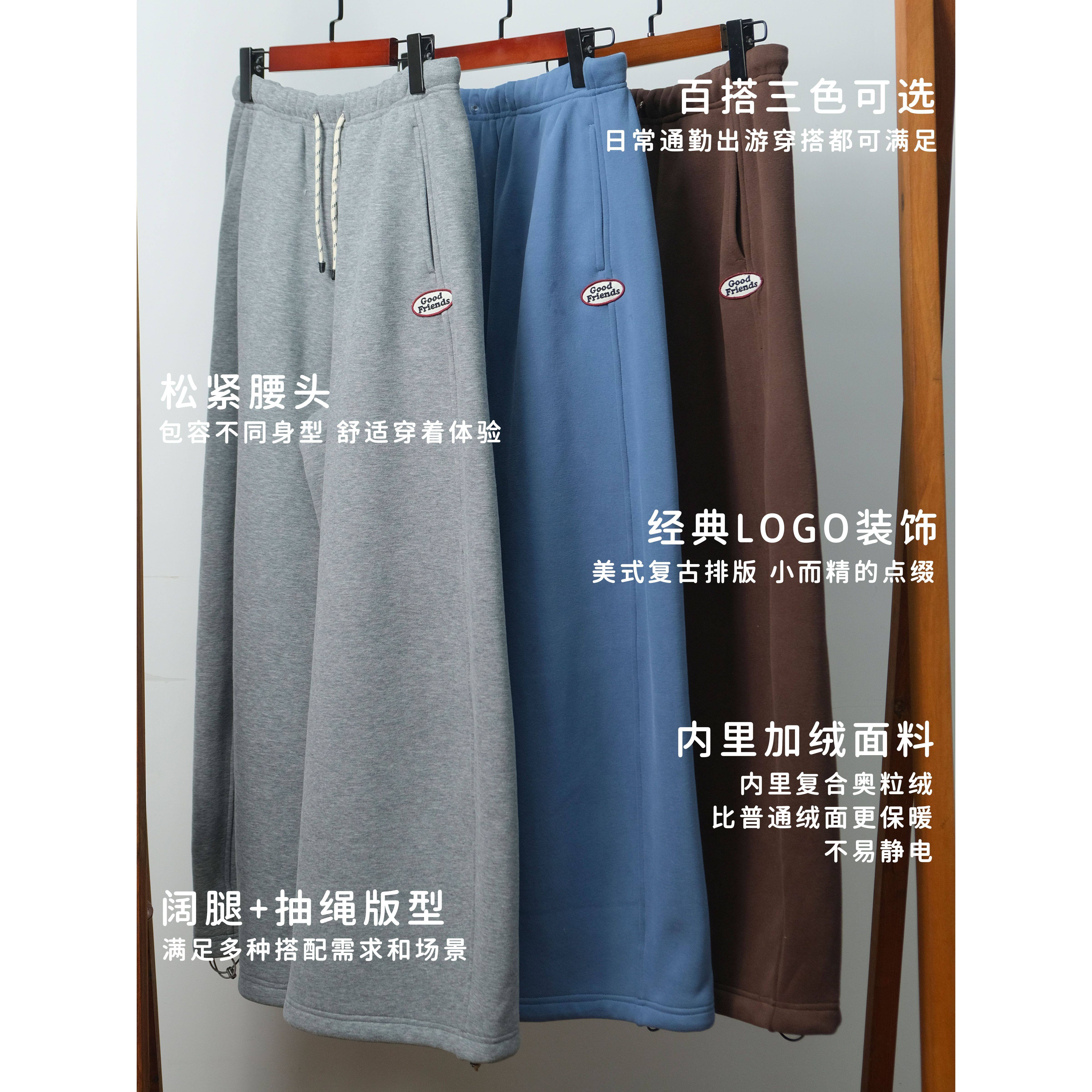 好朋友复古商店·美式 休闲学院显腿长可抽绳百搭 复古加厚加绒卫裤