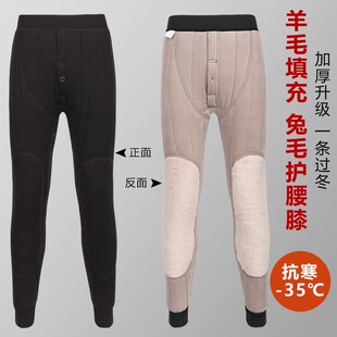 冬季 男士 高腰大码 护膝打底裤 男 新款 中老年加绒加厚棉裤 加肥保暖裤