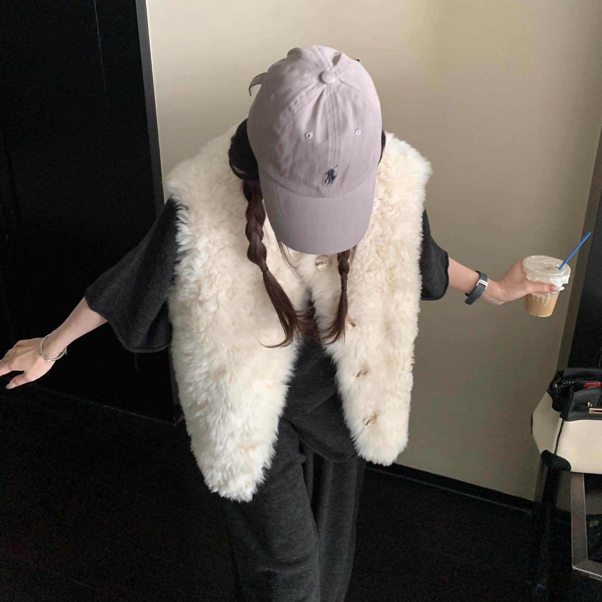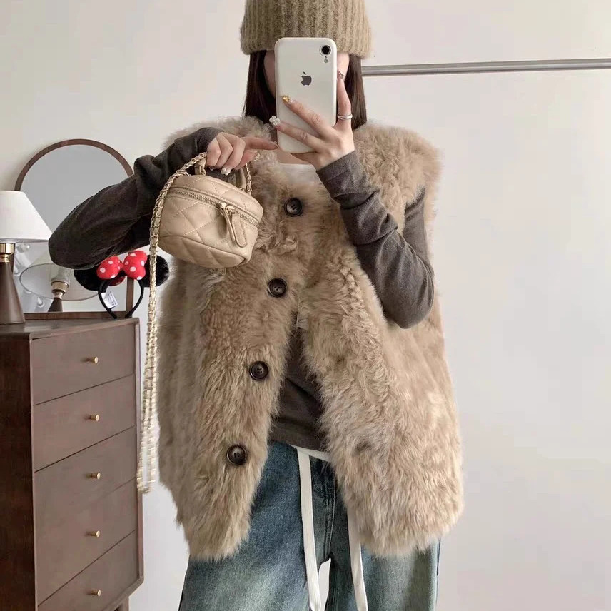 新款 爸爸坎肩女士中老年人冬 真皮毛一体加厚背心羊毛马甲保暖男士