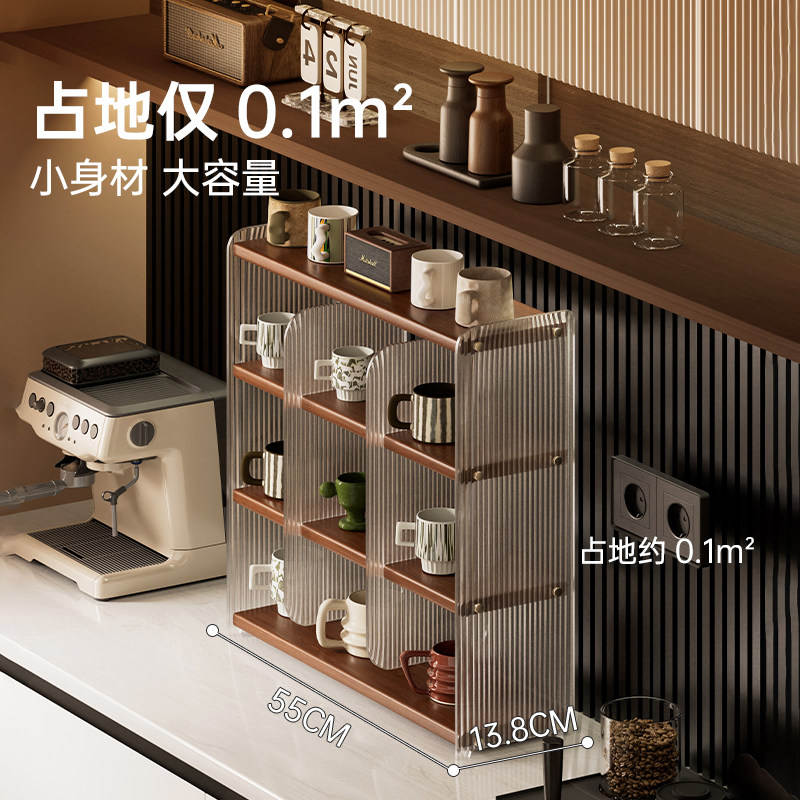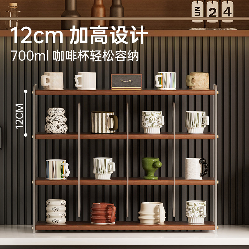陈列架家用置物桌面亚克力实木分层隔板窄边咖啡杯架展示收纳靠墙