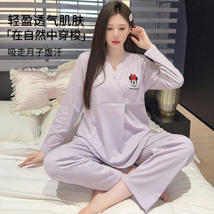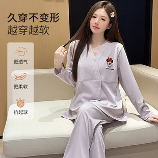 带胸垫防凸点全棉家居服套装 秋冬款 长袖 纯棉秋季 睡衣女士2025新款
