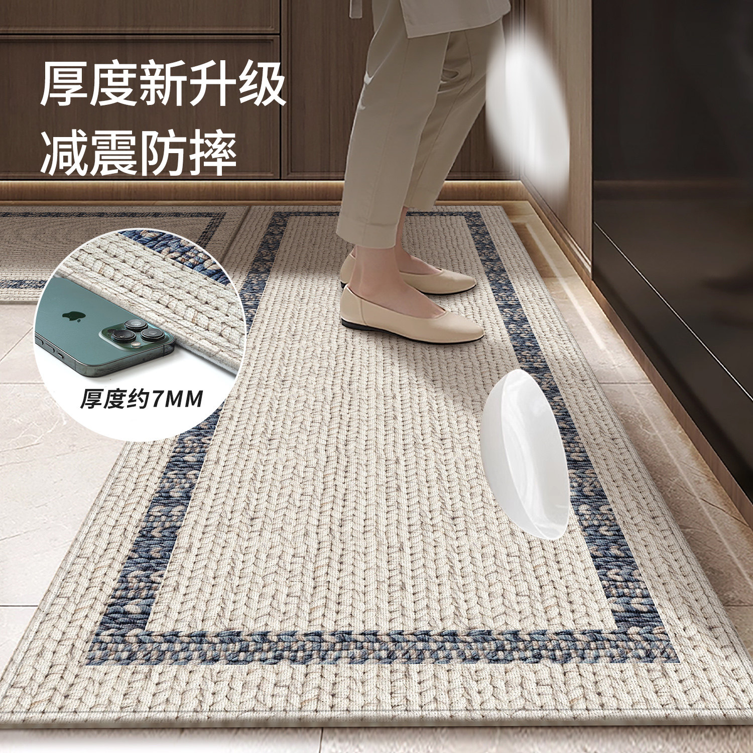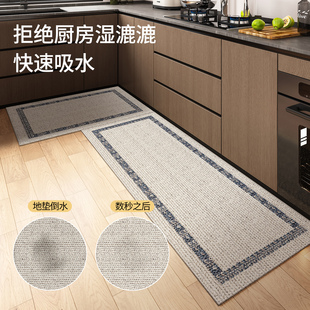 亚麻厨房地垫专用防滑防油吸水垫门口耐脏脚垫家用免洗长条地毯