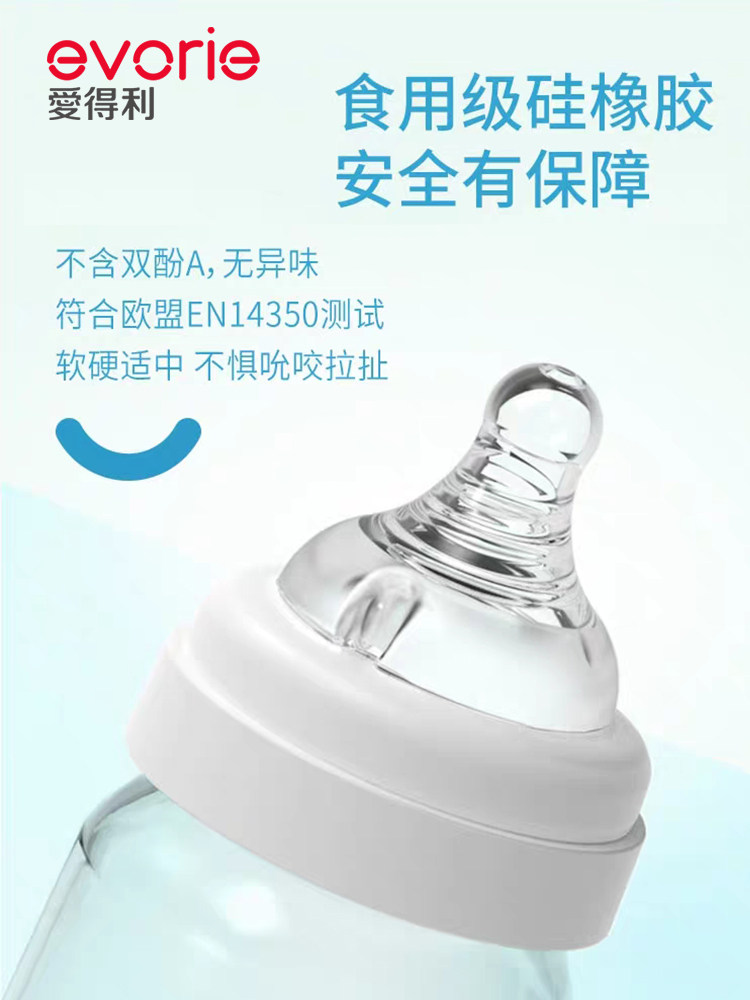 爱得利奶嘴宽口径婴儿防胀气液体超软奶嘴宝宝仿真通用SML 十字孔