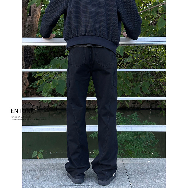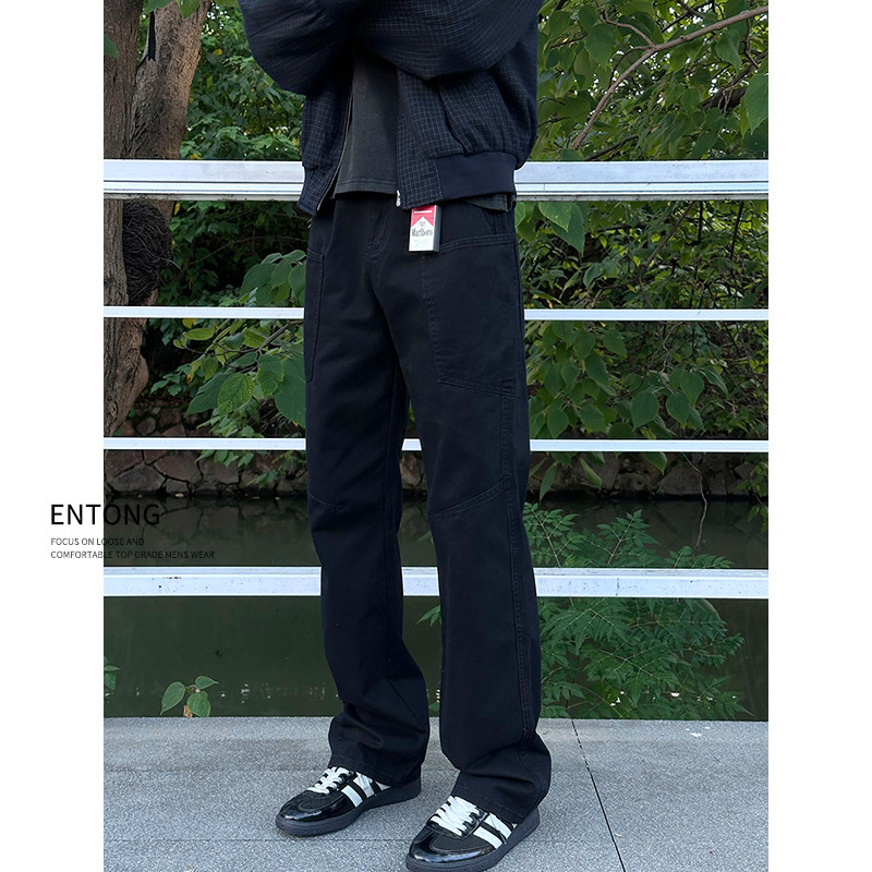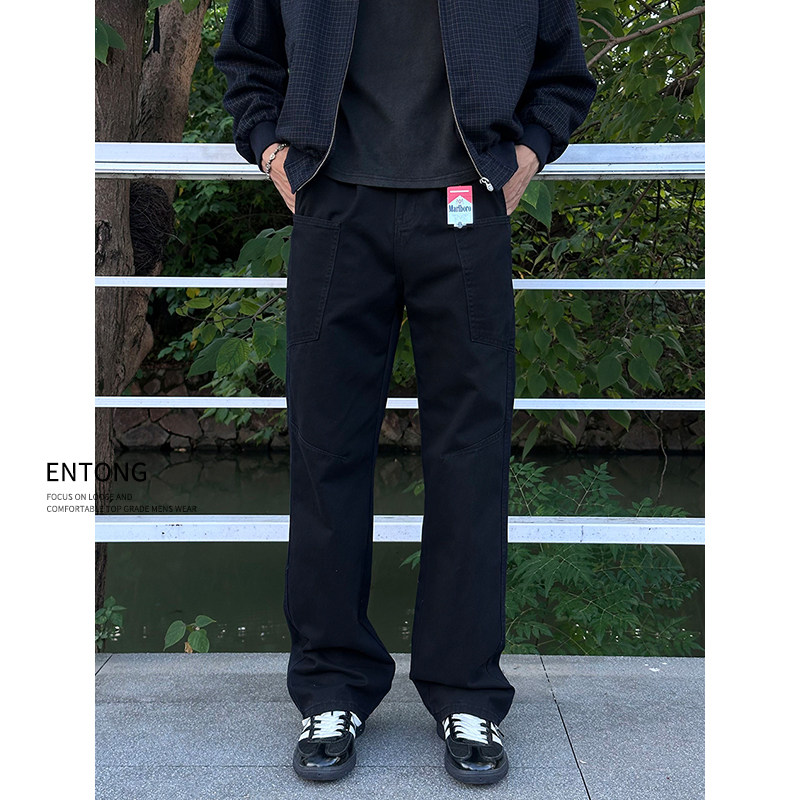 高街直筒宽松大口袋休闲长裤 Entong潮牌百搭黑色工装 美式 子男款 裤