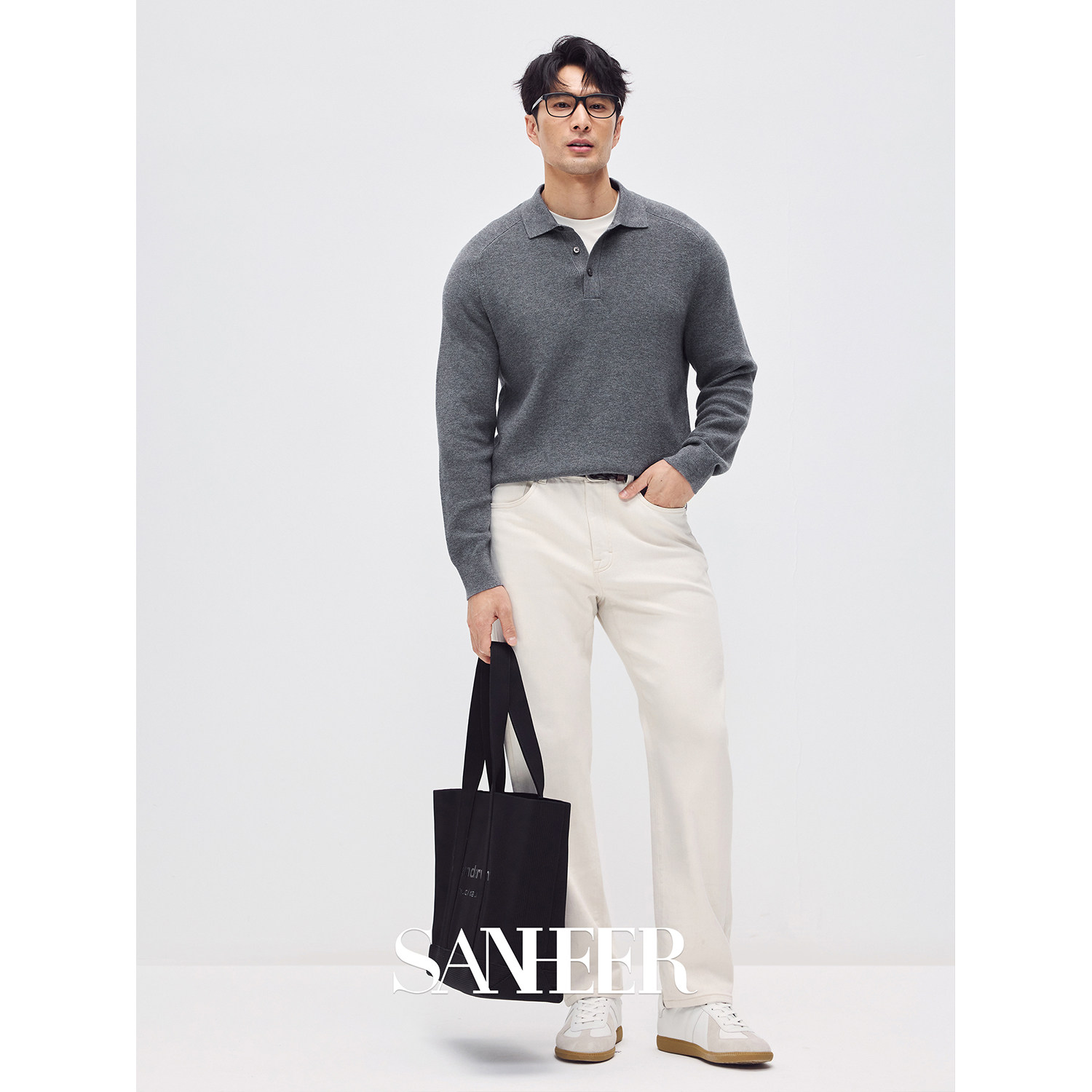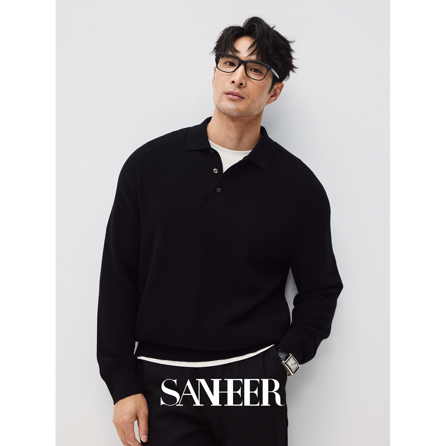 意式 马鞍肩翻领针织衫 老钱风 秋季 DAZ794 亲肤羊毛长绒棉混纺
