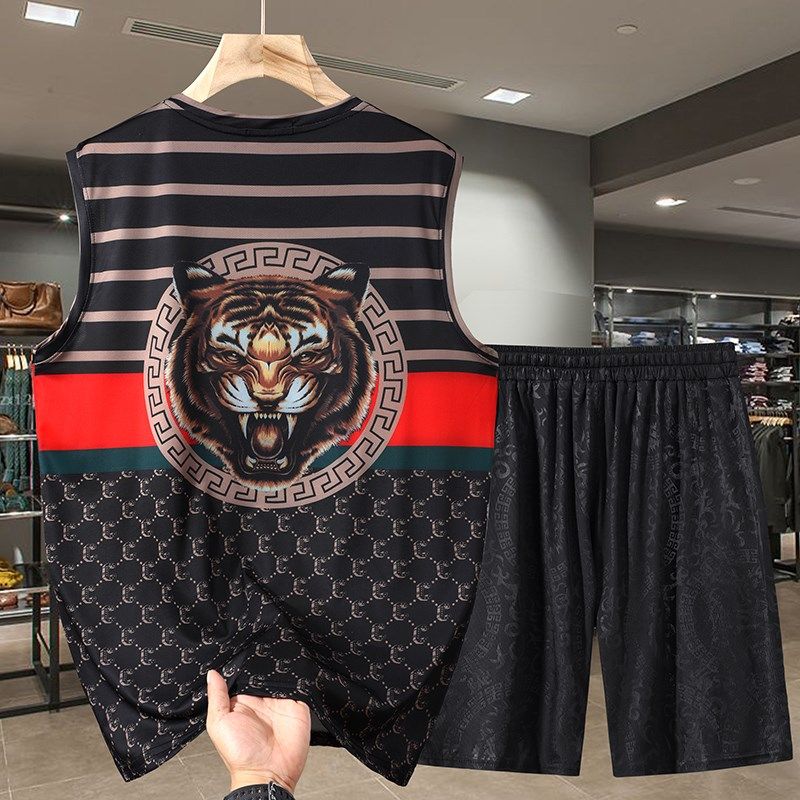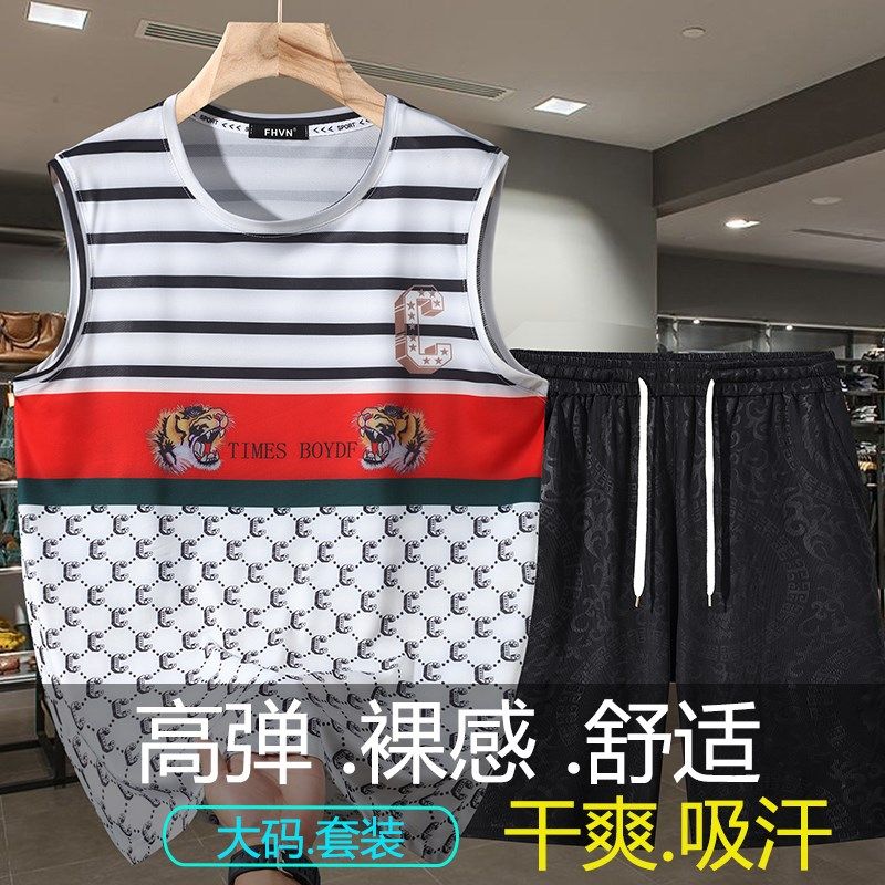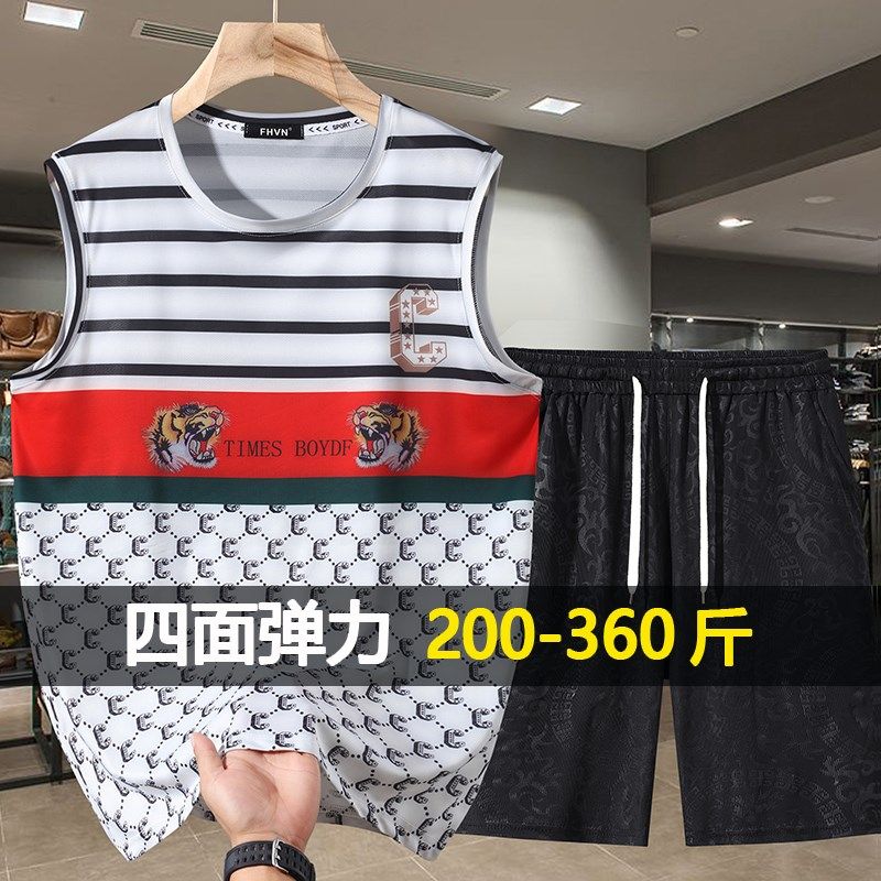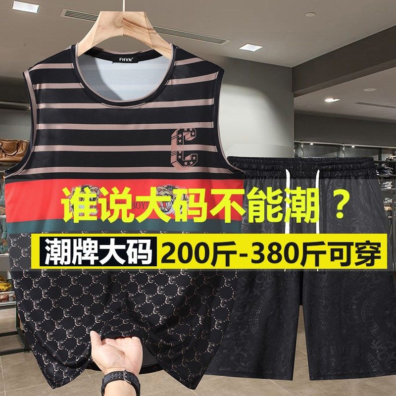 胖子运动两件套 男宽松时C尚加肥加大短袖 300斤潮牌大尺码 背心套装