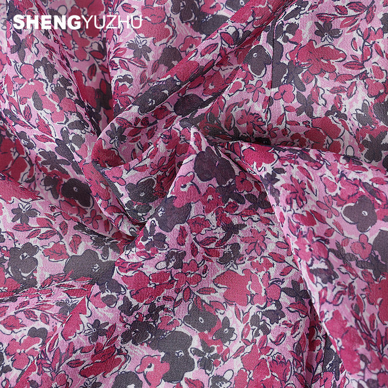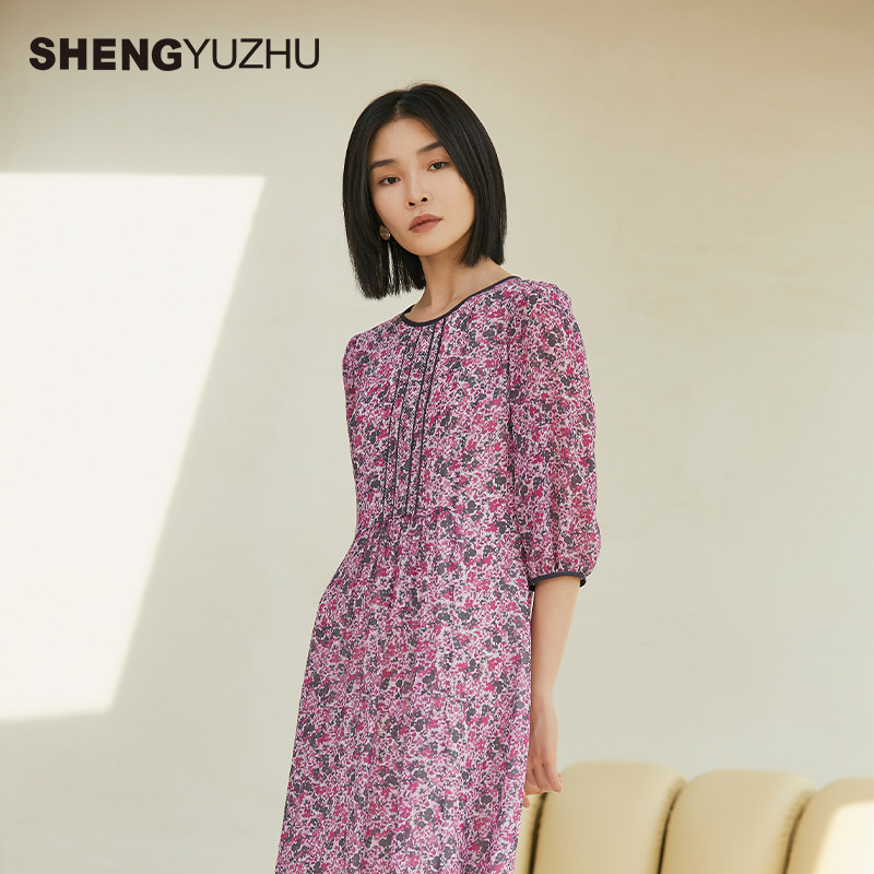 声雨竹旗舰店2025秋冬新款 桑蚕丝连衣裙女高腰A字花色休闲百搭