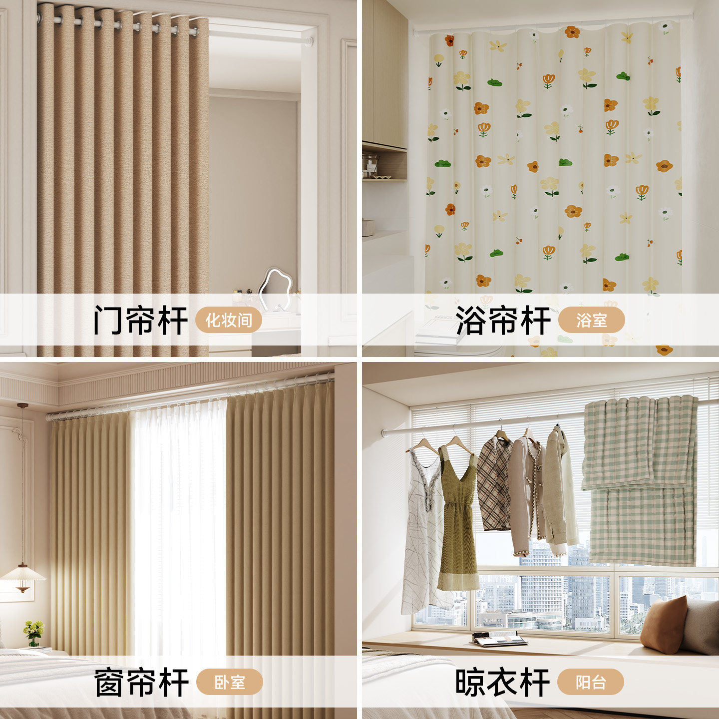 金蝉免打孔伸缩杆窗帘杆承重晾衣杆高碳钢铝合金浴帘门帘衣柜撑杆