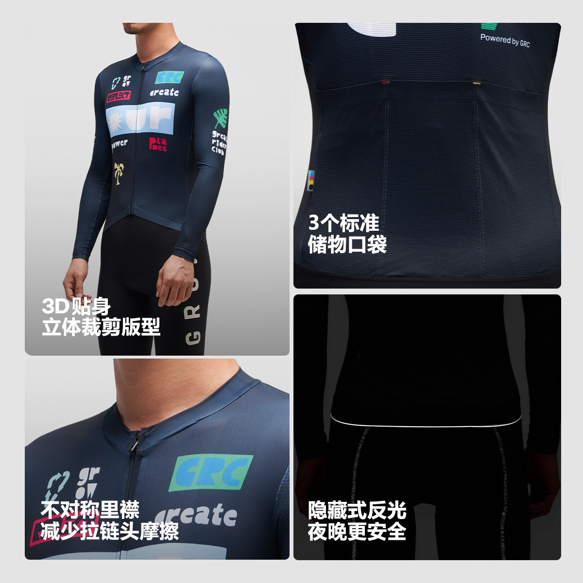 GRC骑行服长袖 CMYK多彩力量防晒透气速干自行车公路车上衣男女