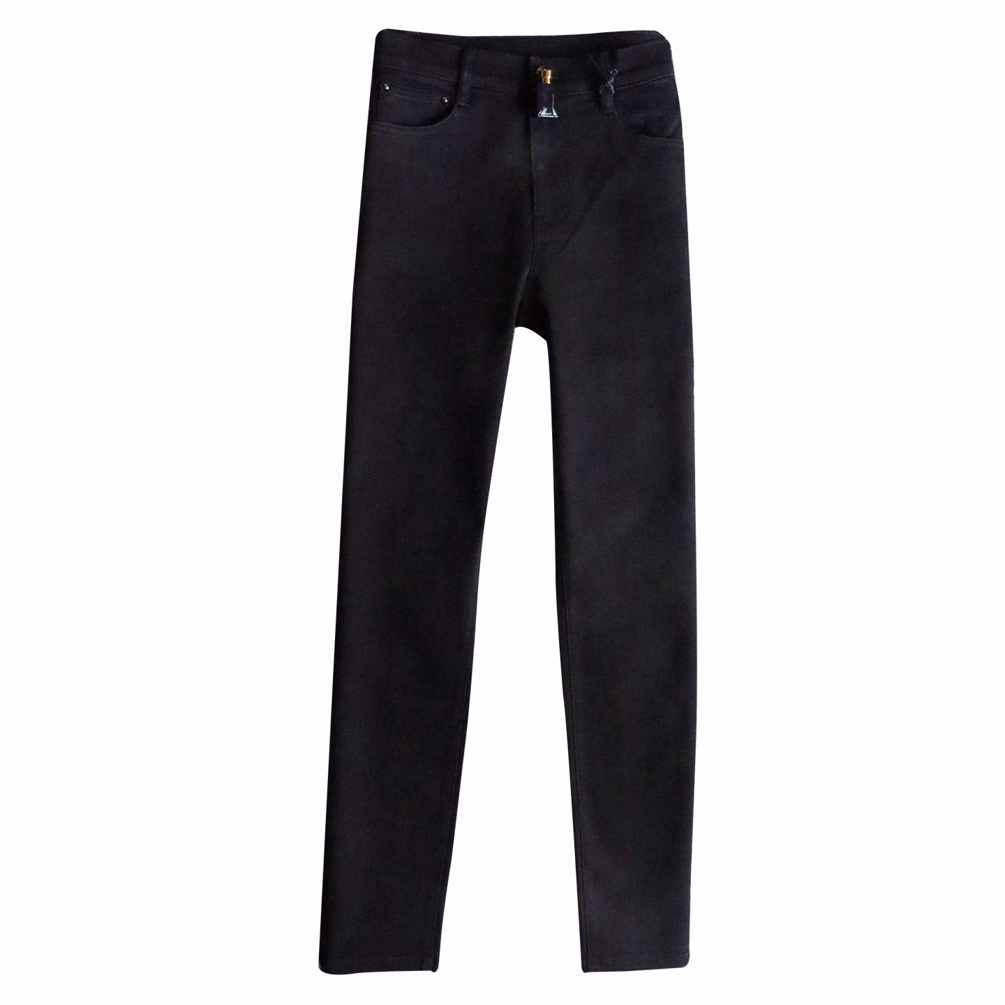 弹力百搭保暖裤 小脚韩版 潮男秋冬新修身 深蓝刺绣加绒加厚牛仔长裤