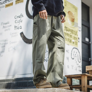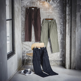 军绿色长裤 MRA男装 直筒帆布法工裤 休闲B01双膝伐木裤 男早秋潮 美式
