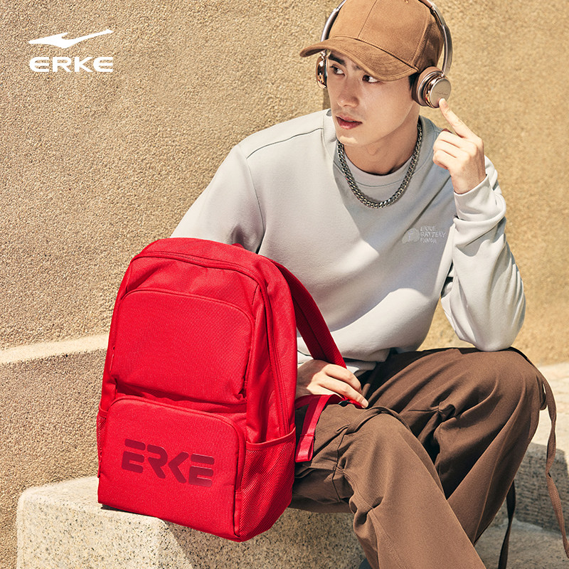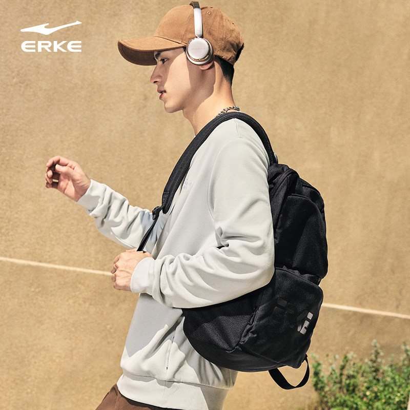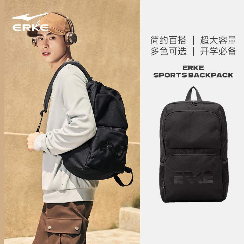 学生背包经典 书包男女同款 简约纯色包 开学新款 鸿星尔克双肩包秋季