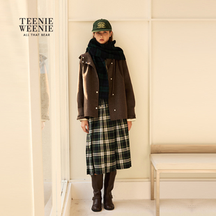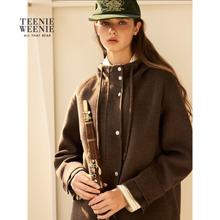 连帽大衣上衣 简约风短款 TeenieWeenie小熊女装 绵羊毛呢外套秋冬季