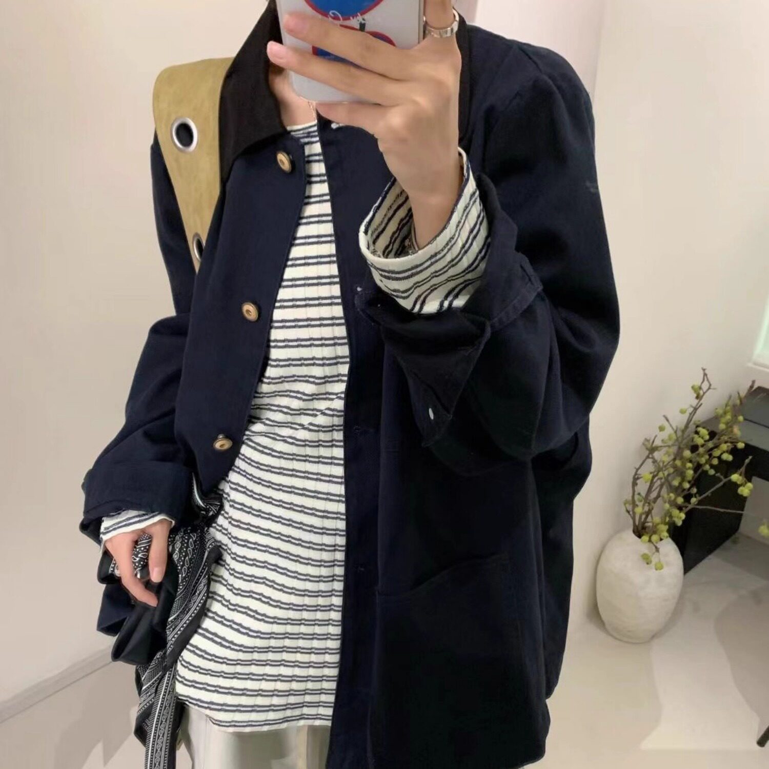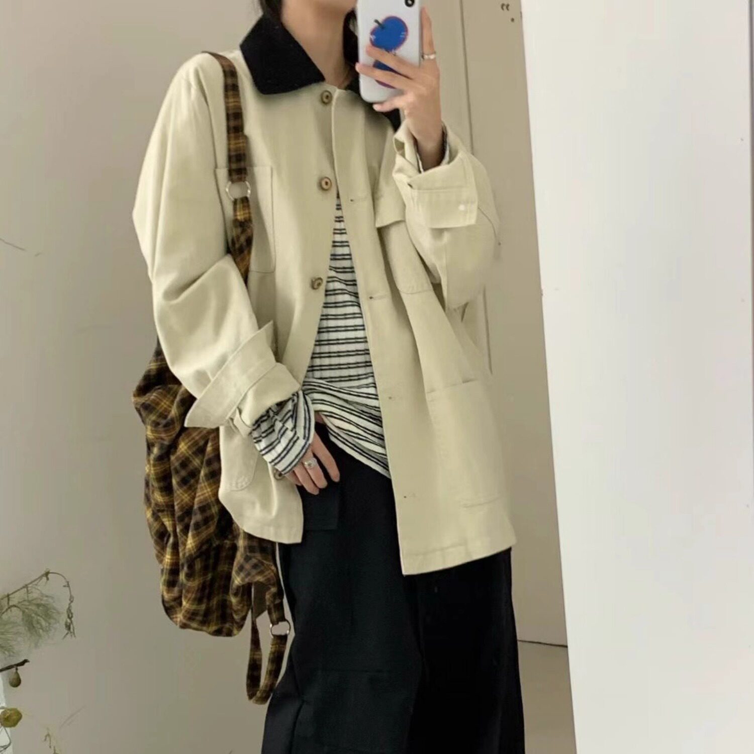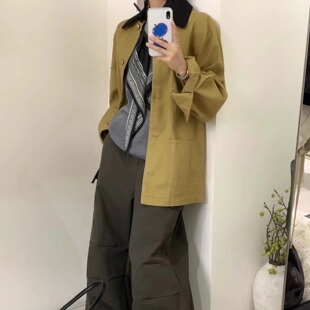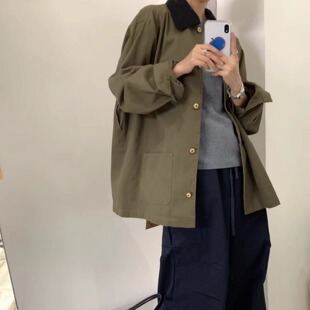 胖mm松弛巴恩风休闲翻领洗水工装 宽松大码 外套 32369秋韩版 大7女装