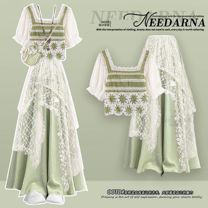 云南旅游穿搭民族风波西米亚连衣裙子2025夏季 果香调多巴胺绿色