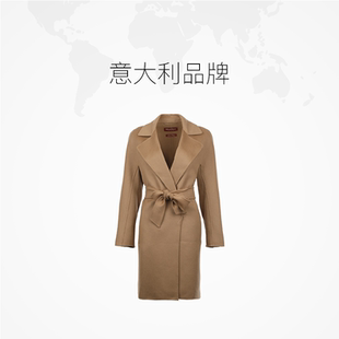 纯色毛呢大衣 MaxMara女士FW25绵羊毛混纺系带翻领中长款 自营