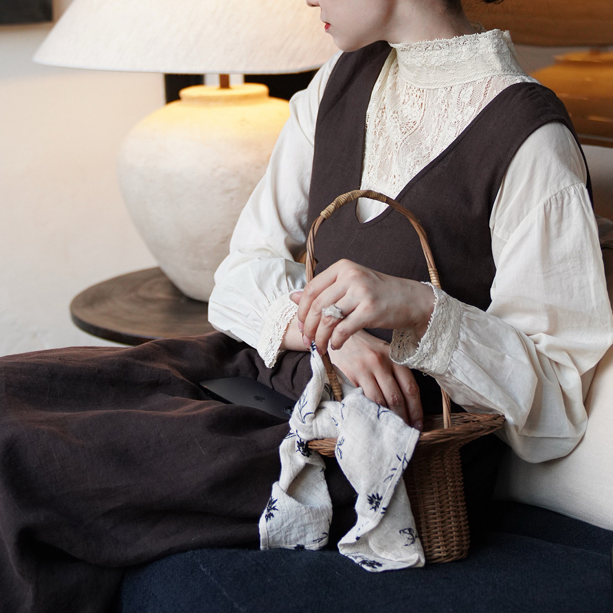AULDCAT 前后两穿抽绳亚麻日系背心裙 2025SS