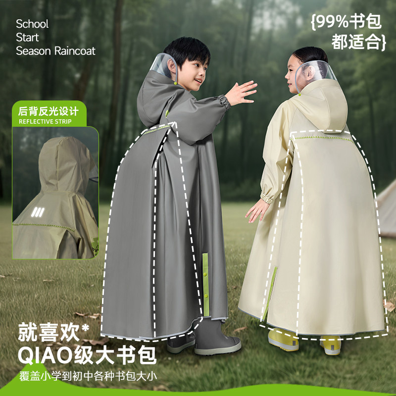 KK树上学专用儿童雨衣男童女童小学生雨披男女孩带书包位2025新款