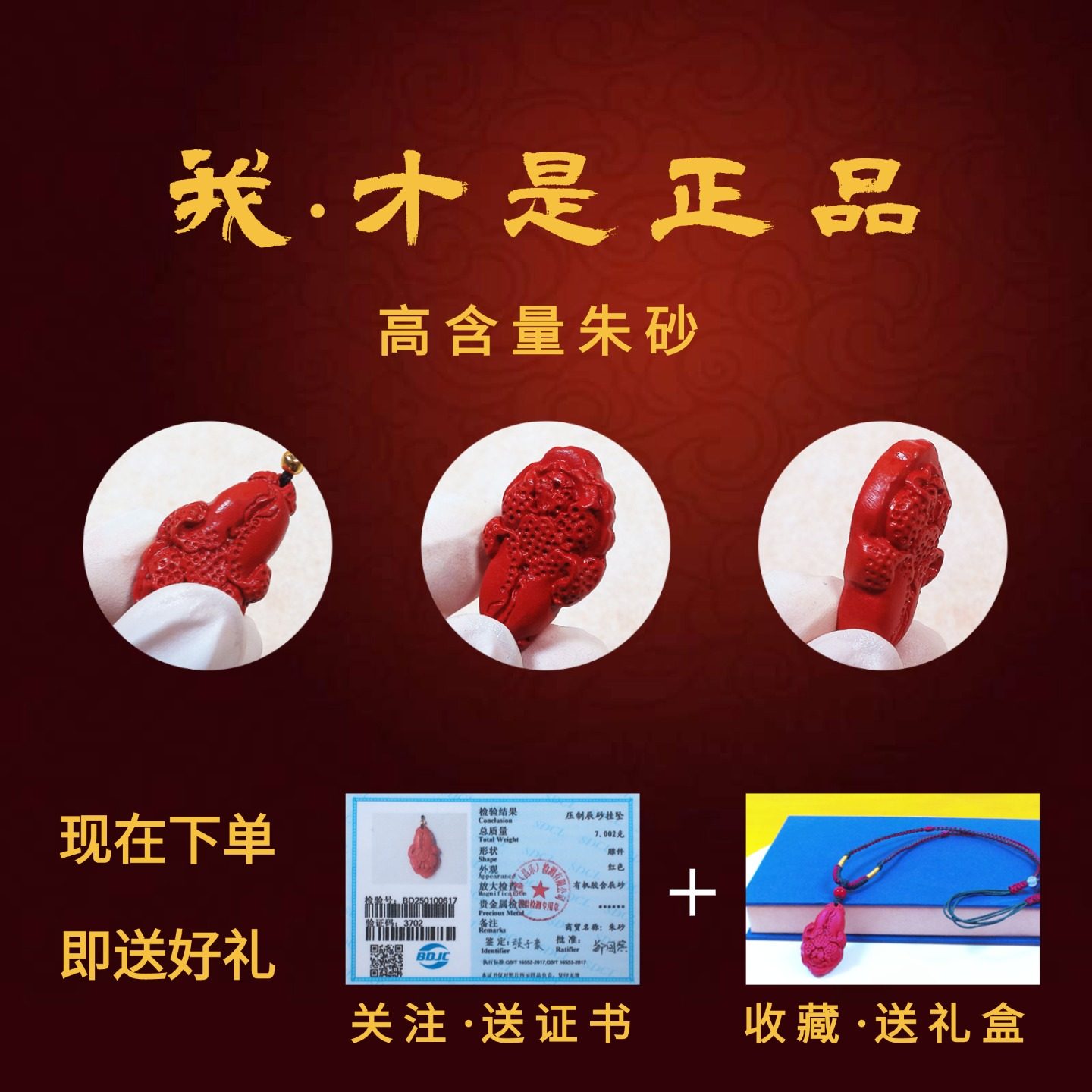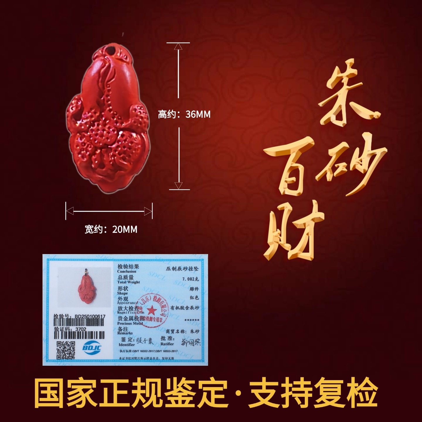 花林天然朱砂白菜原矿高纯度辰砂百财男女儿童项坠吊坠挂件